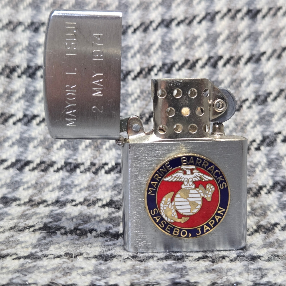 사세보에 주둔한. 미해병대장 R.C JONES 대령이 사세보시장 I. TSUJI에게 증정한 라이터.