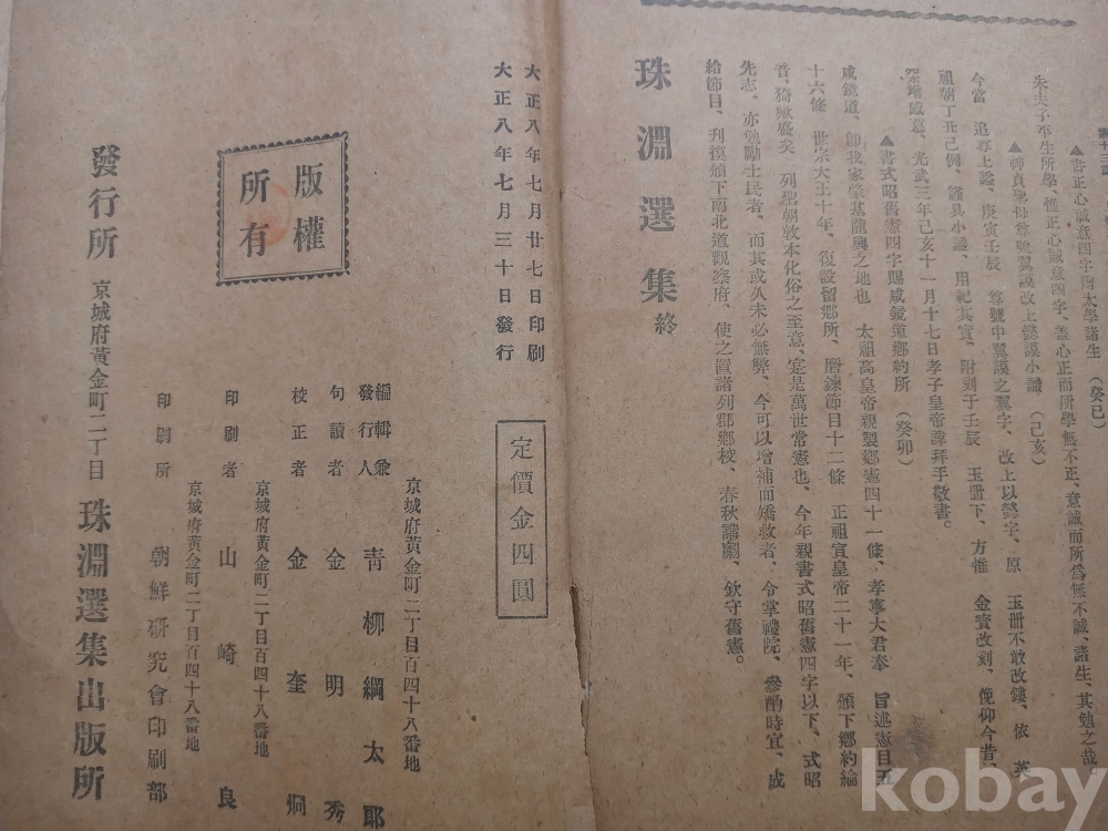 특히 1918년 초판으로 간행되었습니다. 표지의 약간씩의 파손등이
