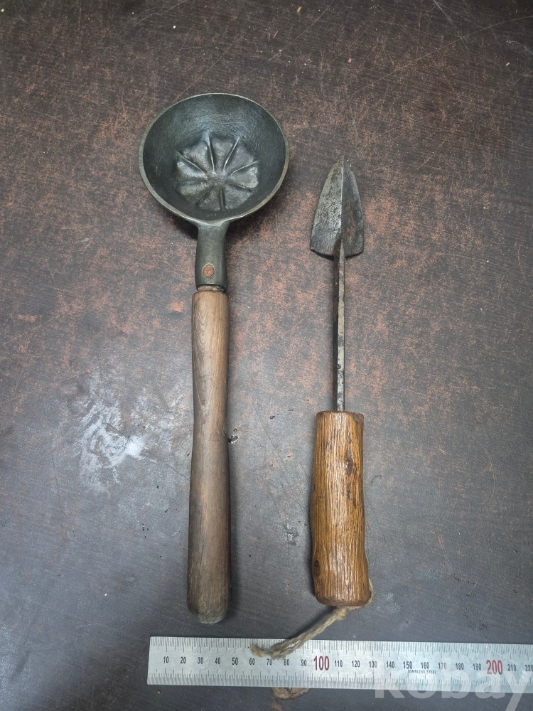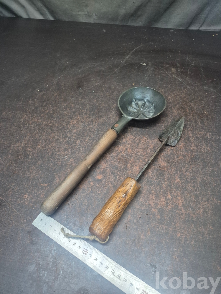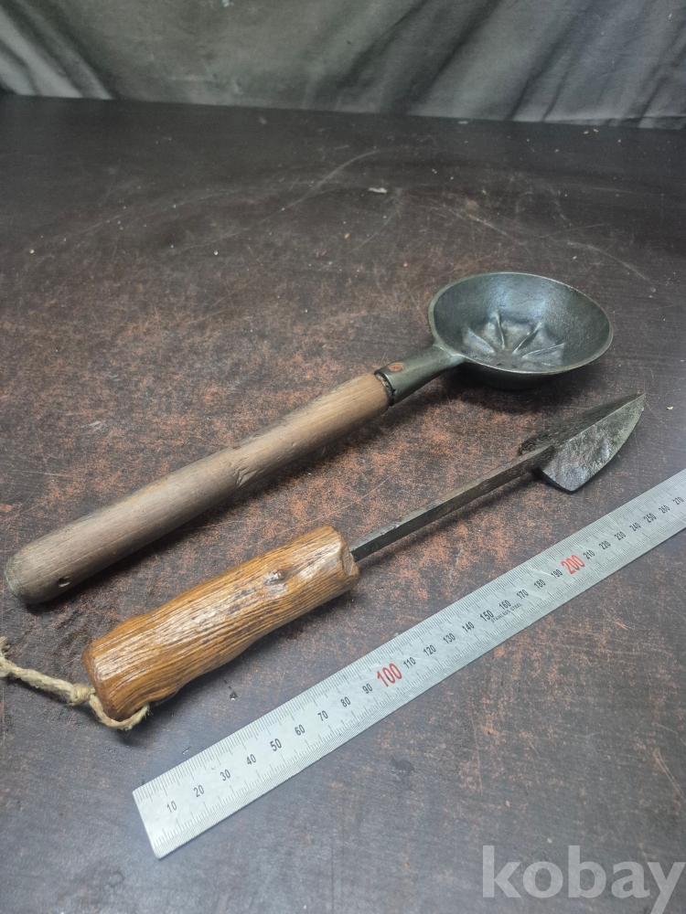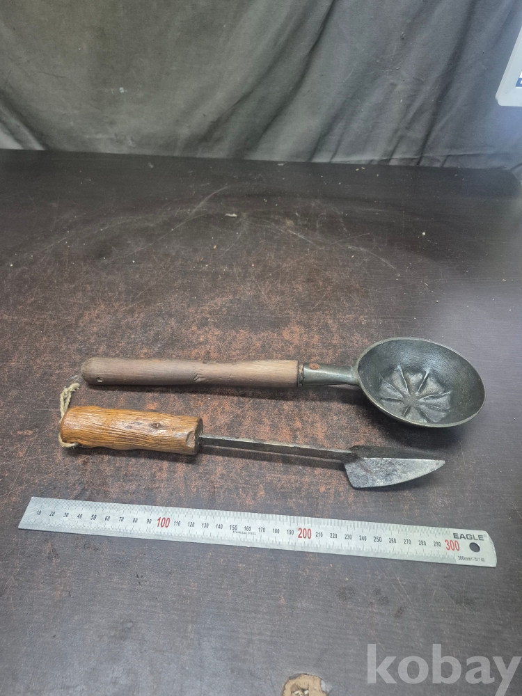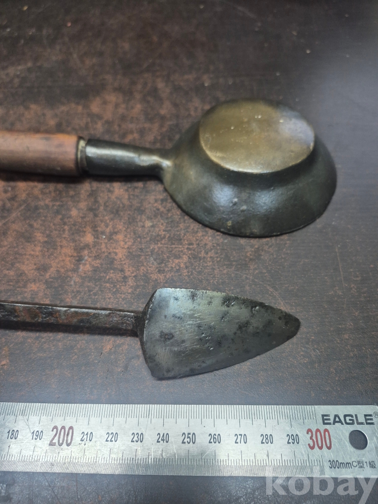 1960년대 동으로 만들어진 숯다리미와 인두 다리미 세트 일괄 35*10*3