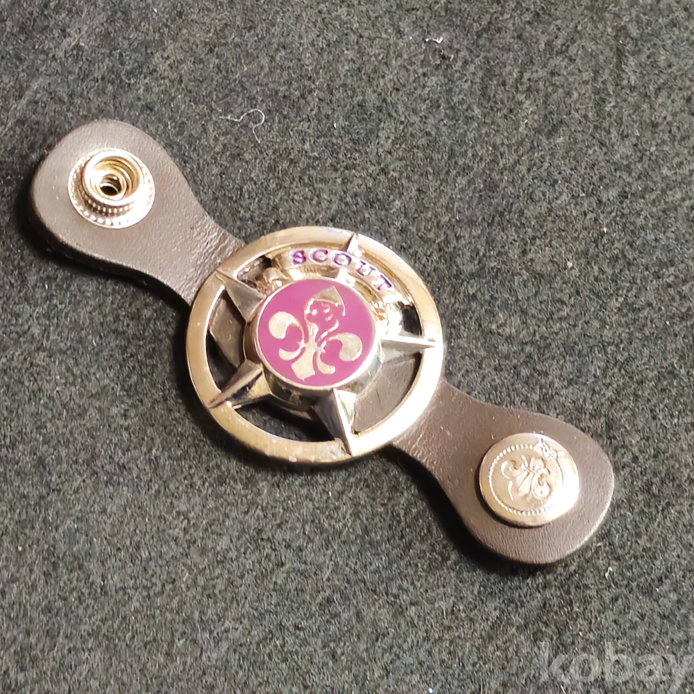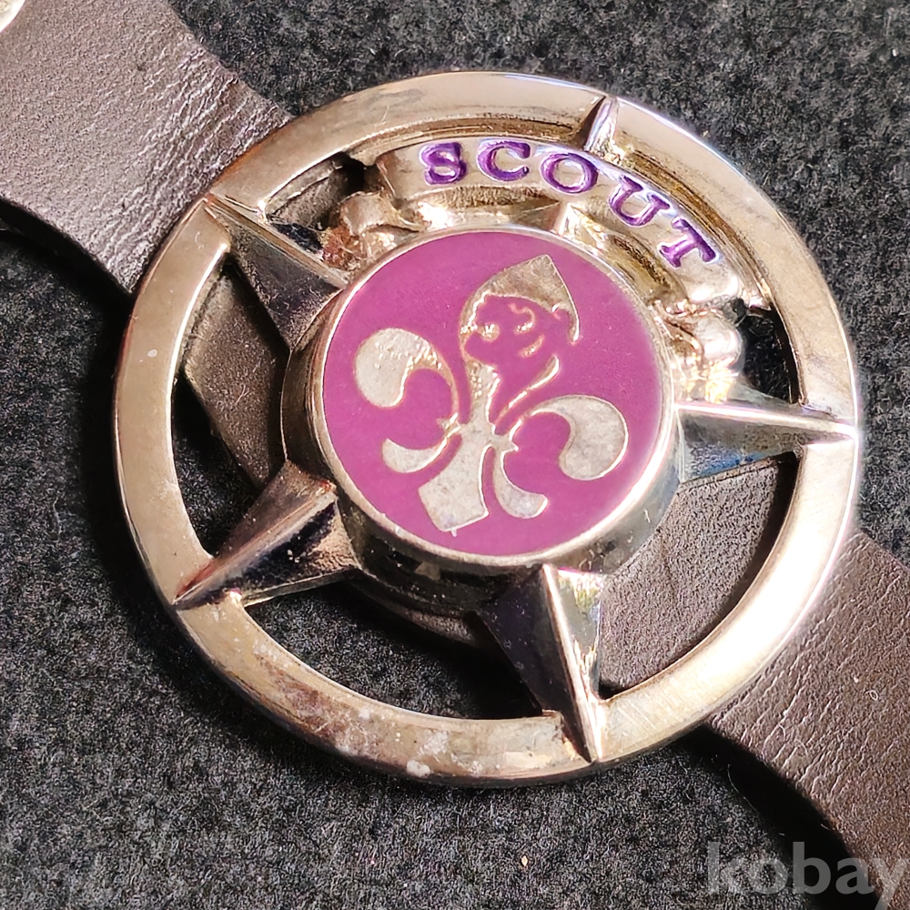 (((근현대사자료/보이스카웃자료/메달))) 오래전 가죽에 금속부착 보이스카웃 로프타이