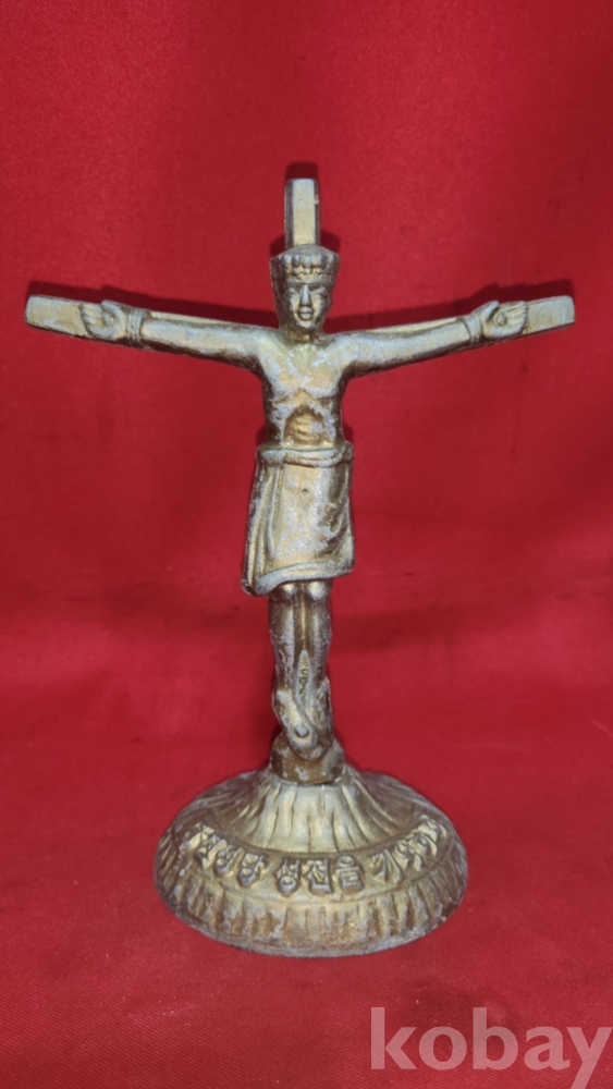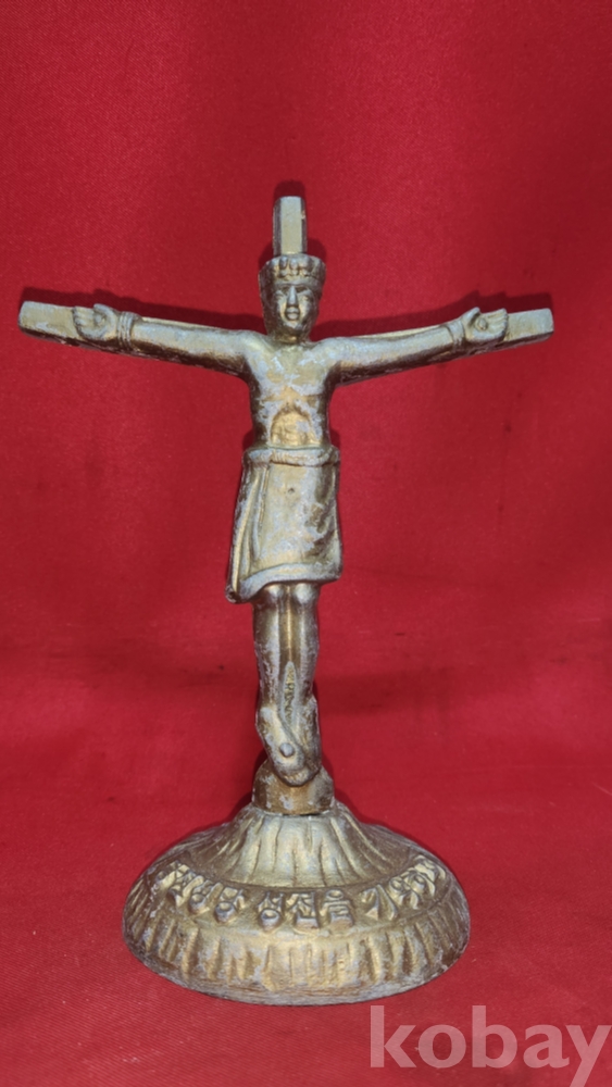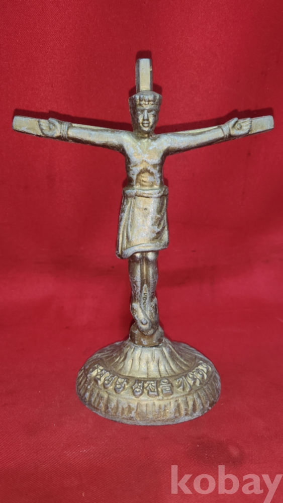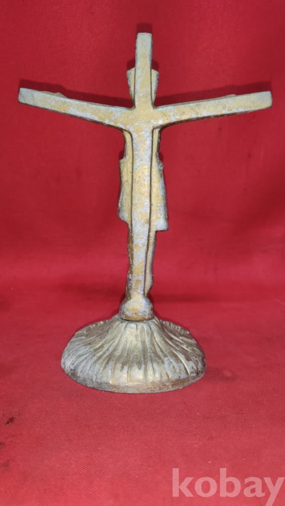 백동 또는 주석으로 완성된 십자가 위에 예수님 상으로 당진 성당 성전을 기억하며 글자가 보입니다,