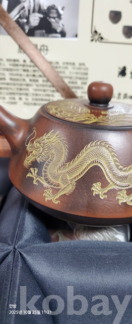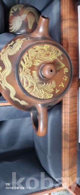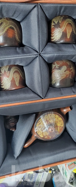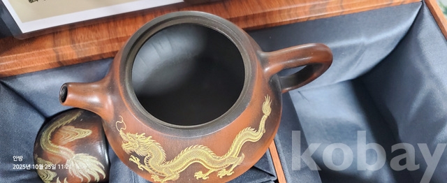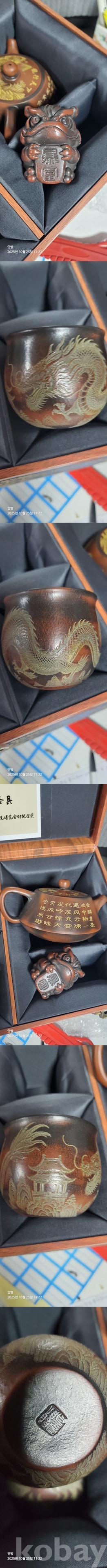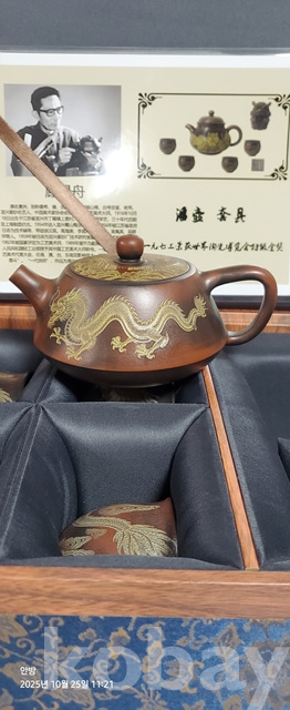 k-46.고급박스에담긴 중국유명도예가고경주의 용문양 자사찻셋트(미감정)