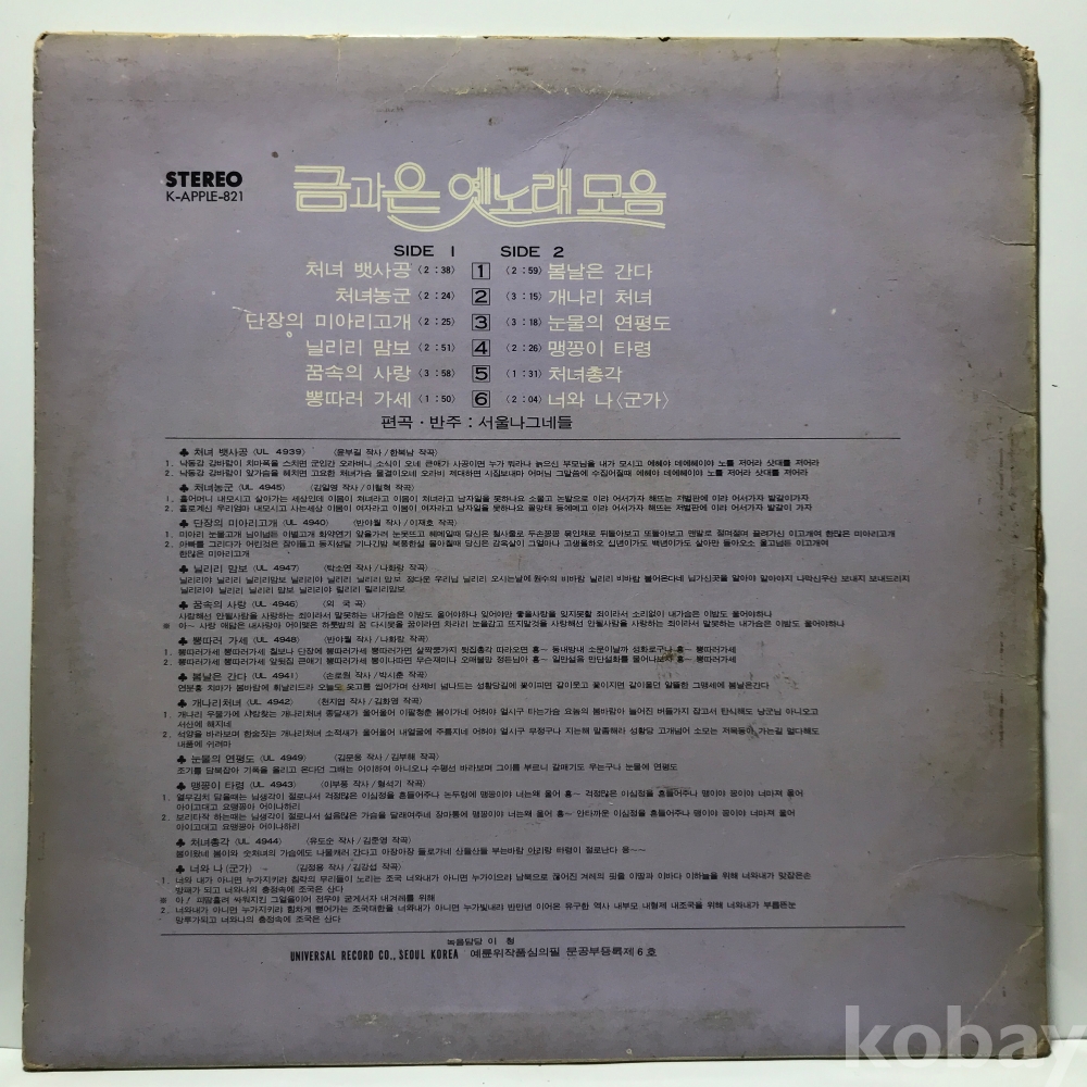 | 자켓상태 | EX : 약간의 마모, 모서리 찢김 존재 | 음반상태 | VG : 생활 기스 다수, 가벼운 노이즈 존재 | 발매정보 | 알수없음 | 가사지여부 | 무 |
