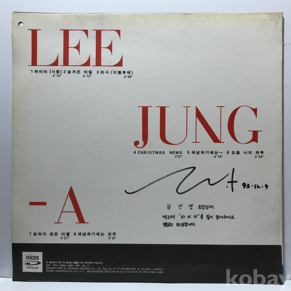 | 자켓상태 | EX : 약간의 마모, 모서리 찢김 존재 | 음반상태 | VG : 생활 기스 다수, 가벼운 노이즈 존재 | 발매정보 | 알수없음 | 가사지여부 | 무 |