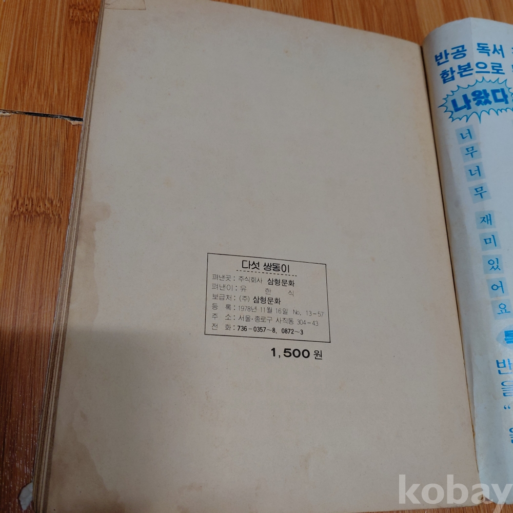 다섯쌍둥이 1978년 삼형문화 발행 올려드립니다