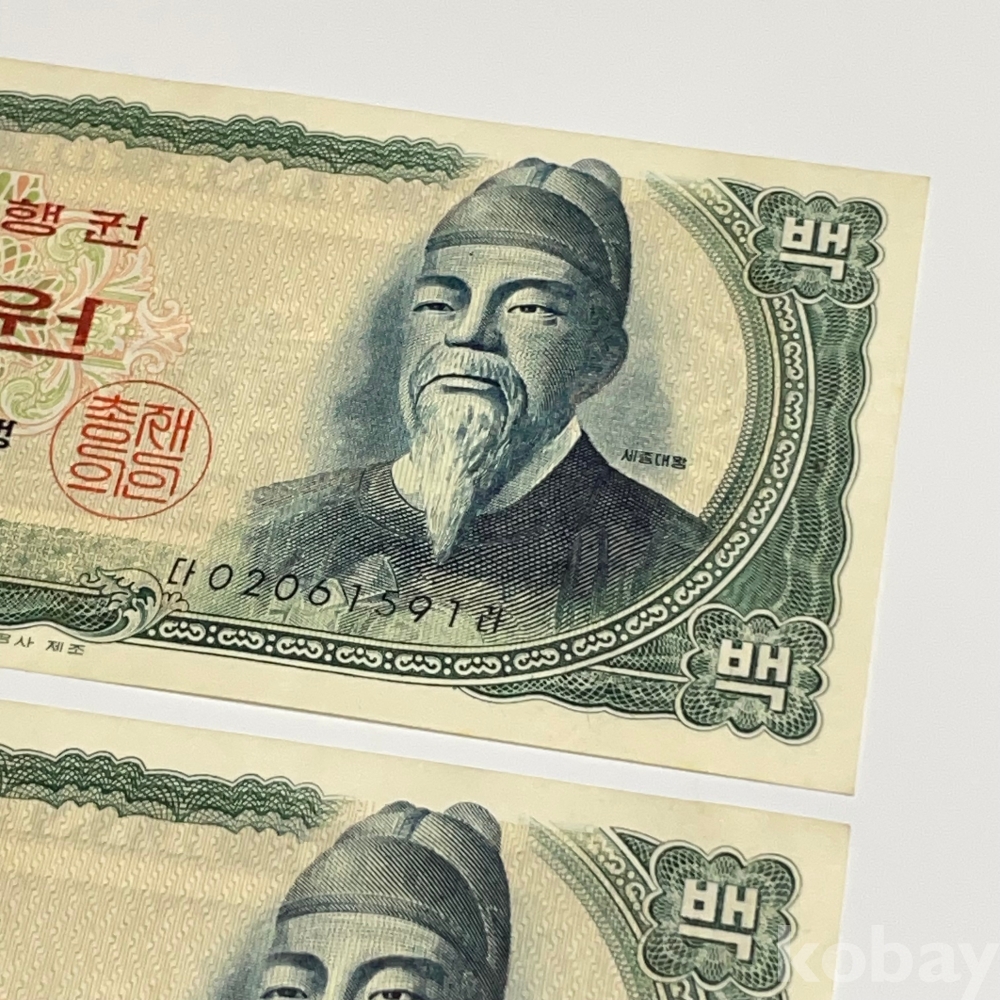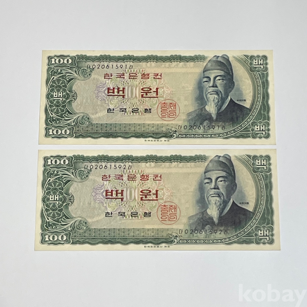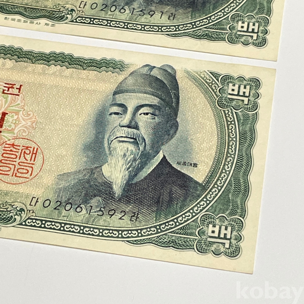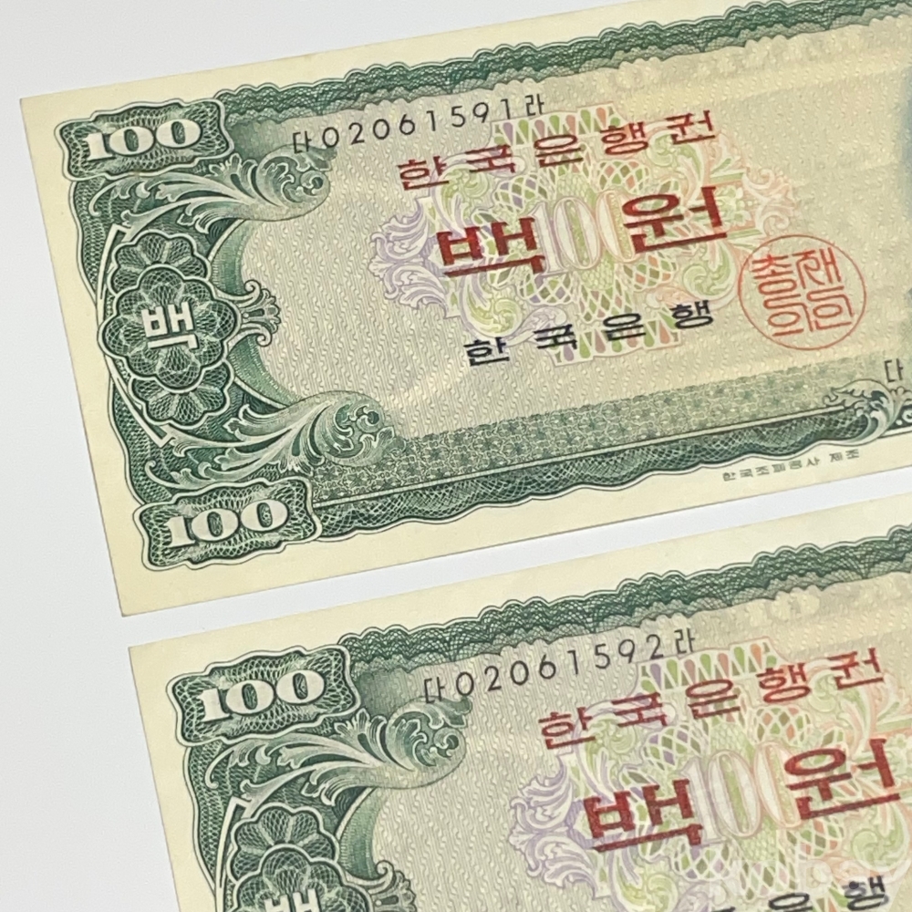 [연속번호★미사용] 한국은행 다 100원 세종 백원권 2매 (다 02061591~2 라)
