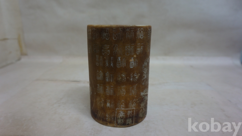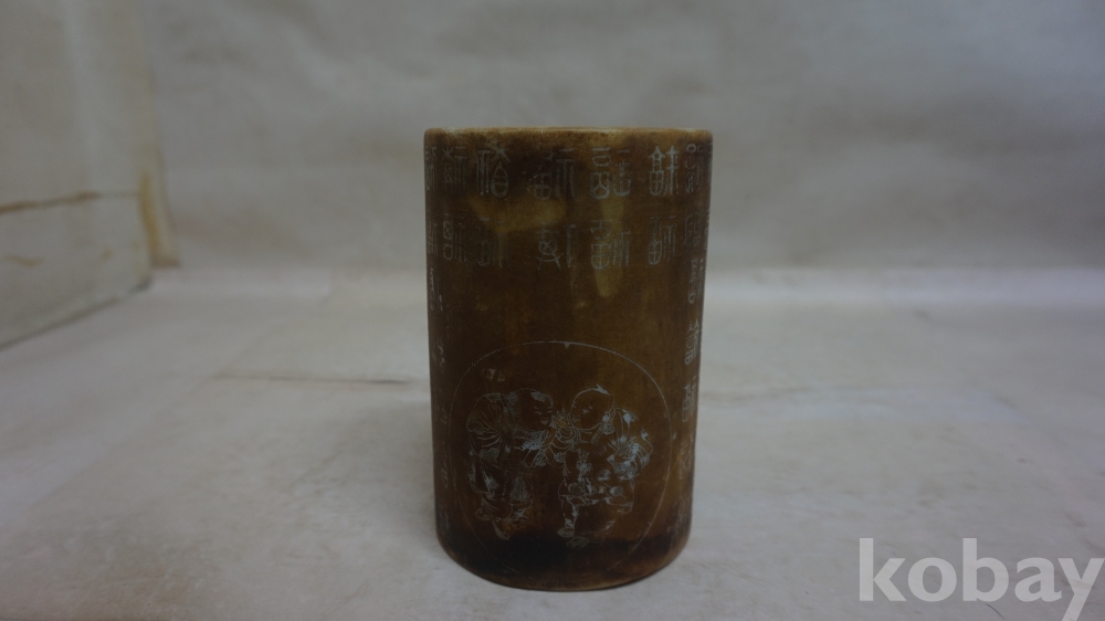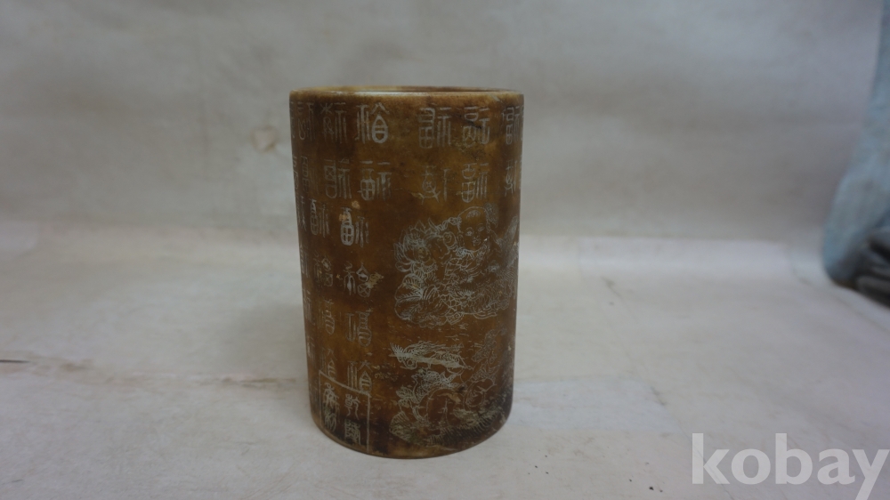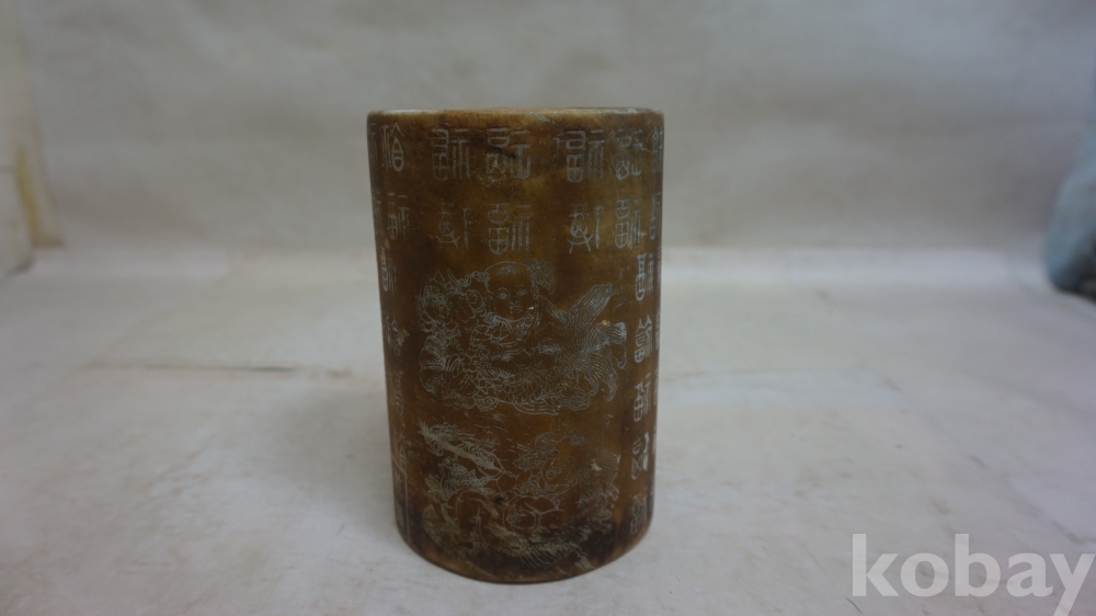 ◈◈청대../황유 글자.동자문,ㅡ''원형 필통 한점◈◈