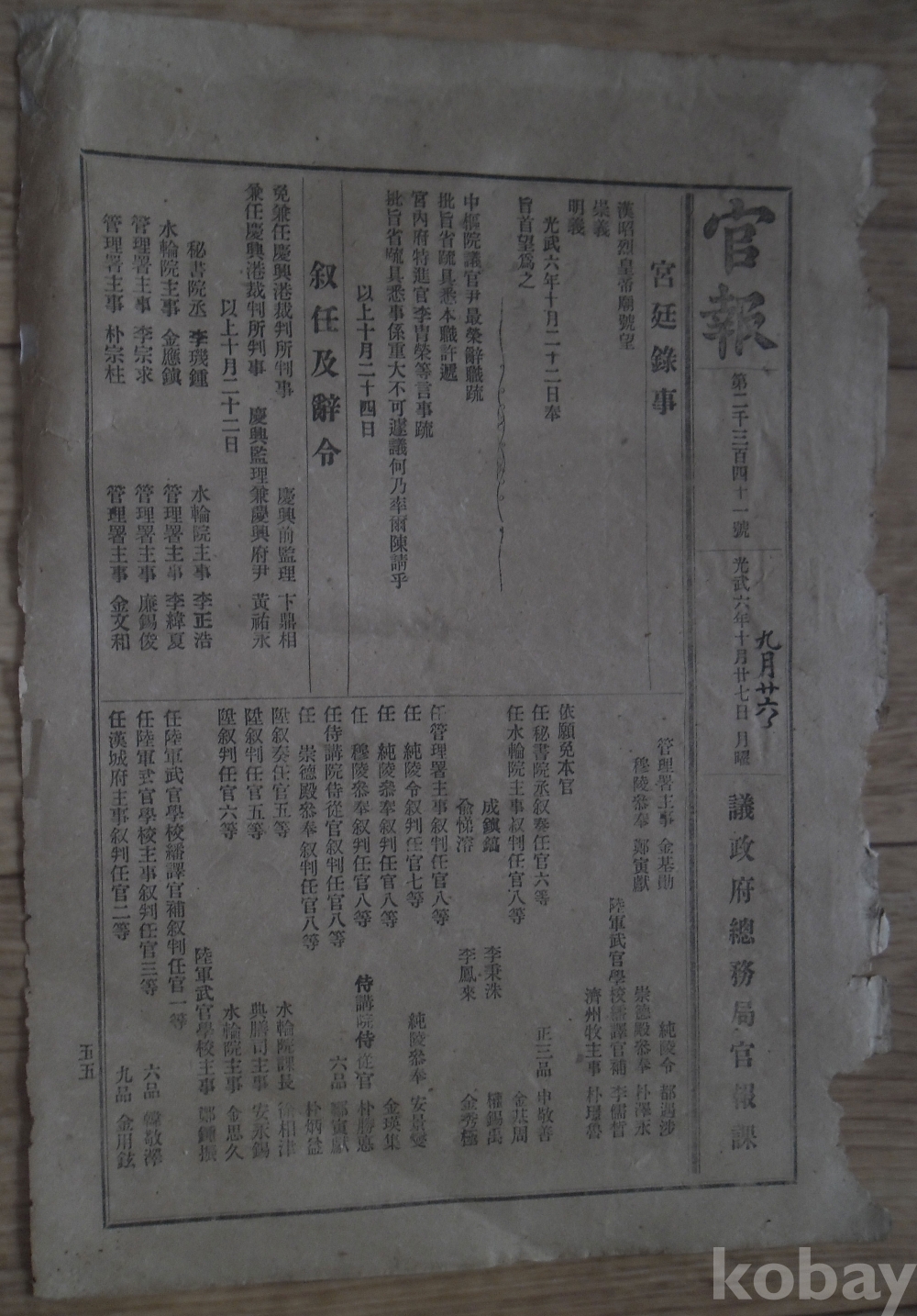 중추원. 혜민원. 경흥항재판소. 육군무관학교. 제주목사 사령 소식 등 수록