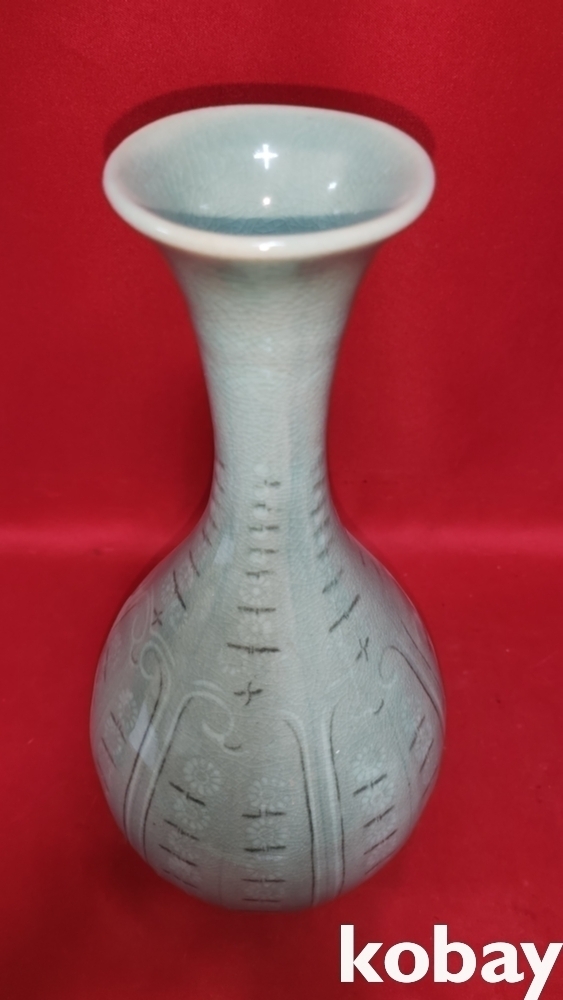청자 국화문 병입니다,, 색감이 좋고 크기가 큰 관계로 연출 가치도 좋습니다,