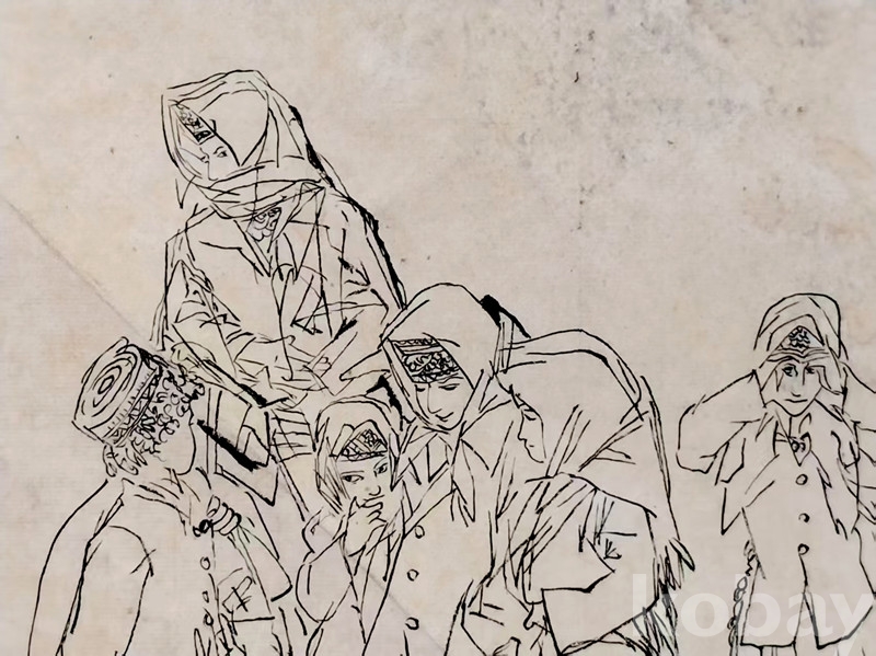 중국 인물화대가 황주(黄胄) 1970년대 소수민족 백묘(白描) 인물크로키