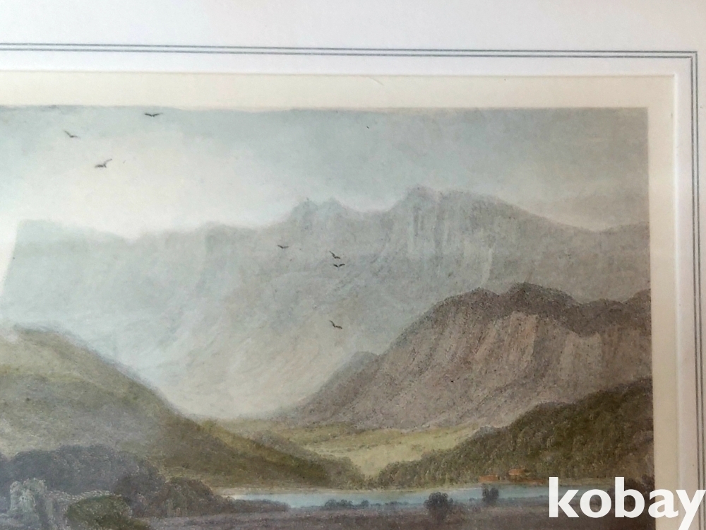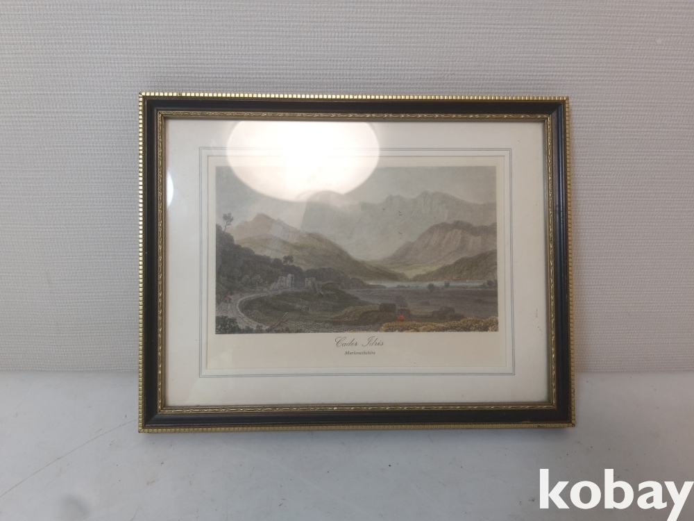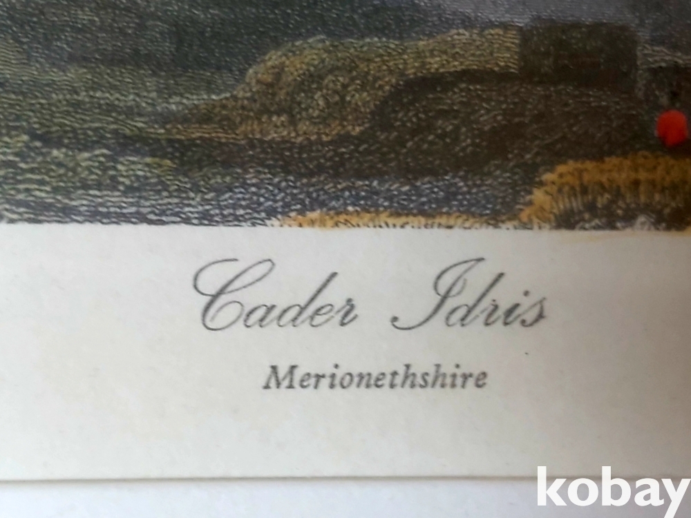 펜화로 보이는 열정적인 솜씨로 완성된 사실화의 인쇄본으로 유명관광지인 'Cador Idris의 광활한 평야와 호수, 높고 우람한 산세가 무척 평화롭게 전개되었습니다.