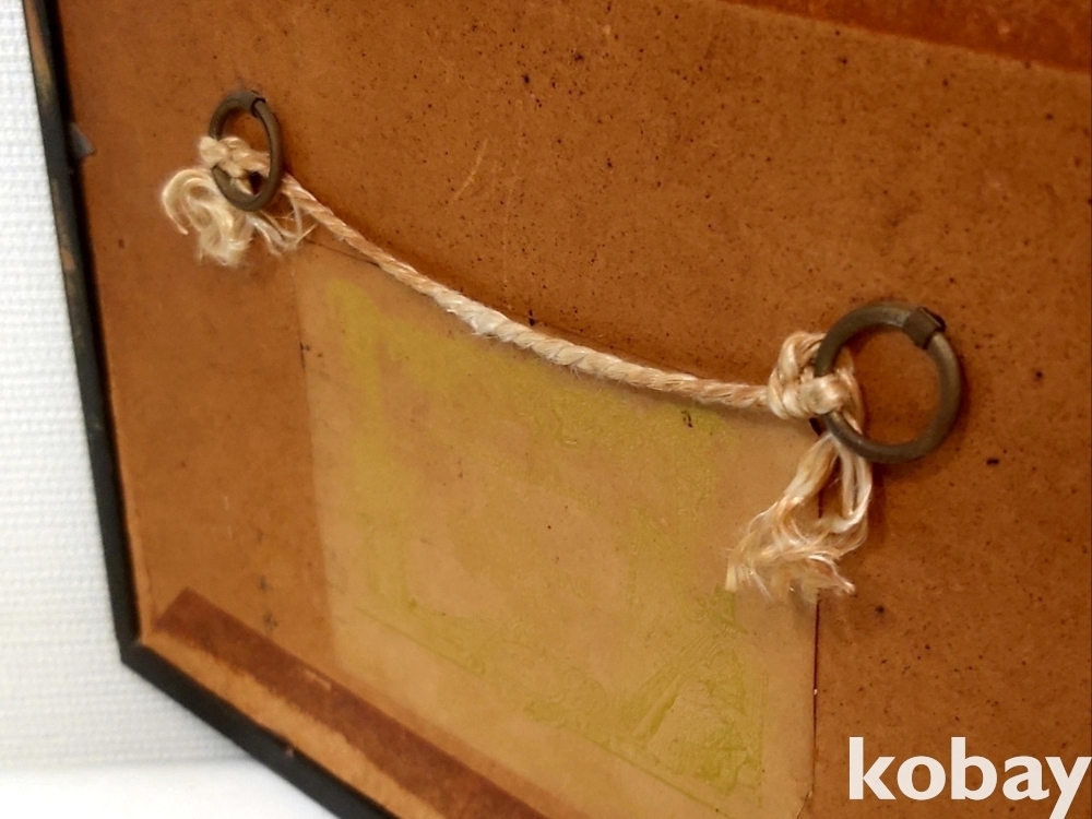 영궄의 전통을 보여 주는 초록색 왼목액자와 금색후레임의 매치가 고급스럽고 후면에는 판독이 어러운 샵의 스티커와 메탈링에 묶인 끈의 모습도 무척 빈티지합니다.