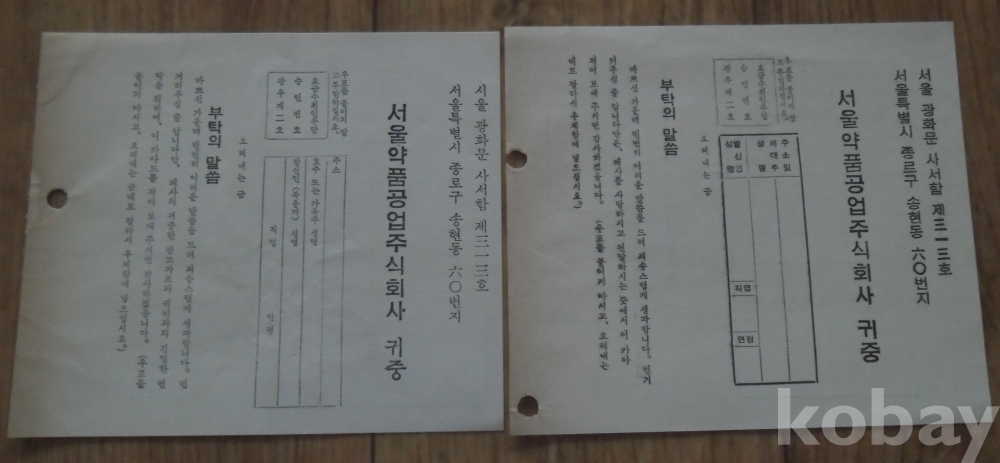 서울약품 홍보엽서 2종