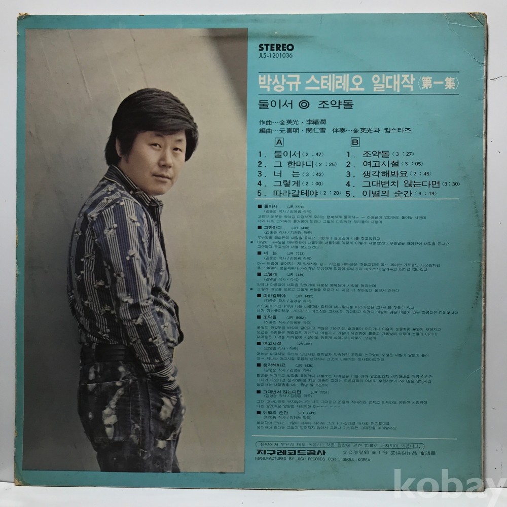 LP 35,750-7 박상규 스테레오일대작 제1집 - 둘이서/ 조약돌 . 75 지구 자켓 EX 알판 VG+