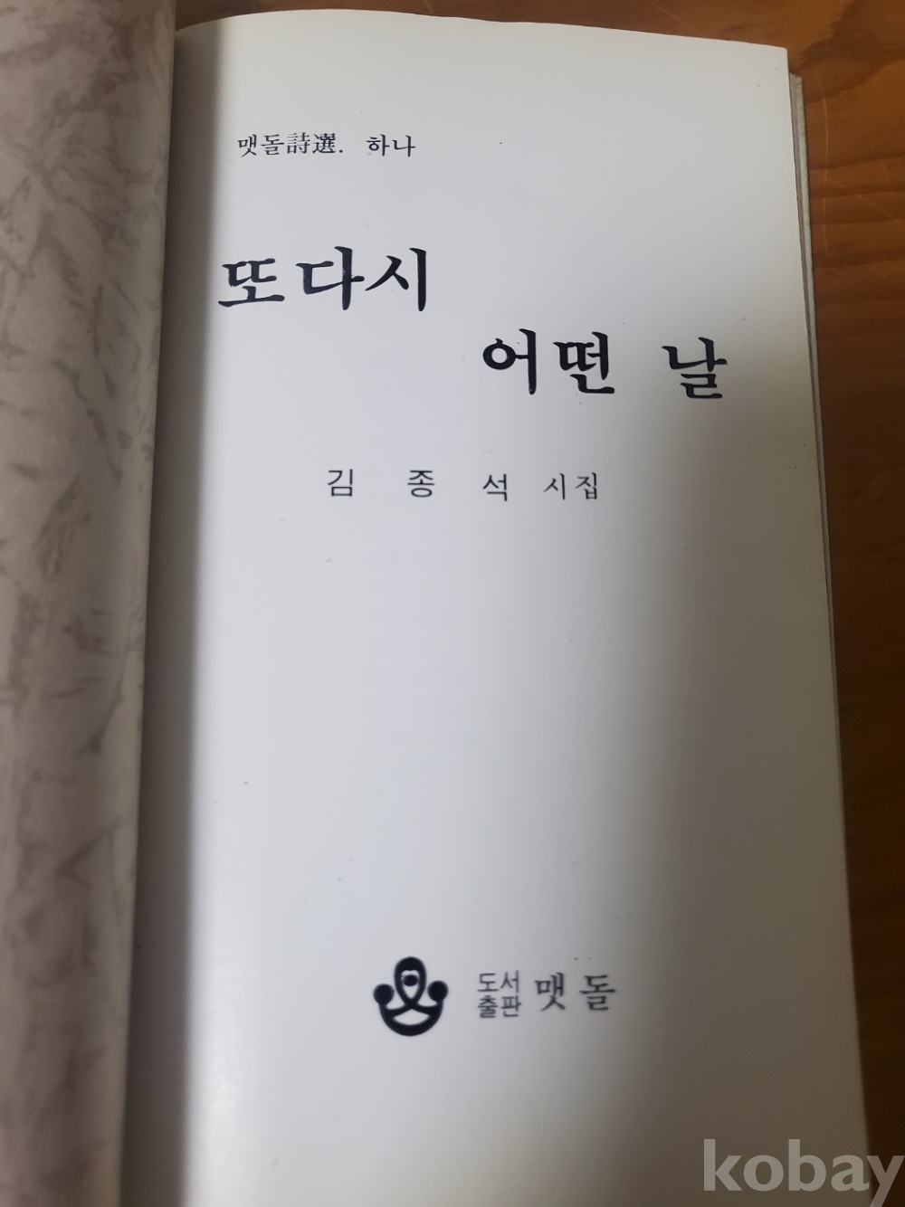 1. 또 다시 어떤 날, 김종석, 도서출판 맷돌, 1981년, 109쪽, 상태 상, 사진 참조