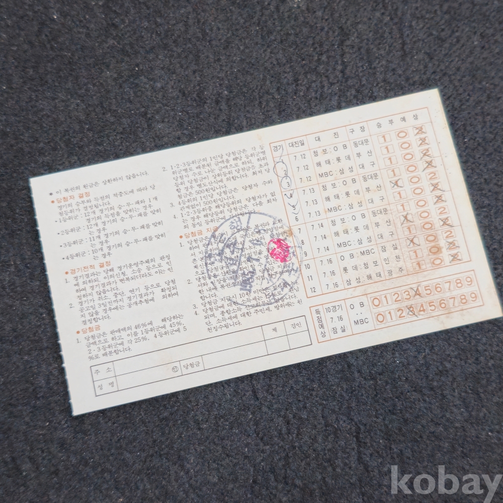 (((프로야구자료/야구복권/호돌이))) 1985년 야구복권 (제15회) (청보 정구선)