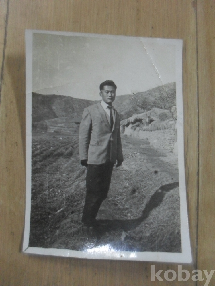 1223h)작은사진-60년대 초가집 앞에서 남성 사진.