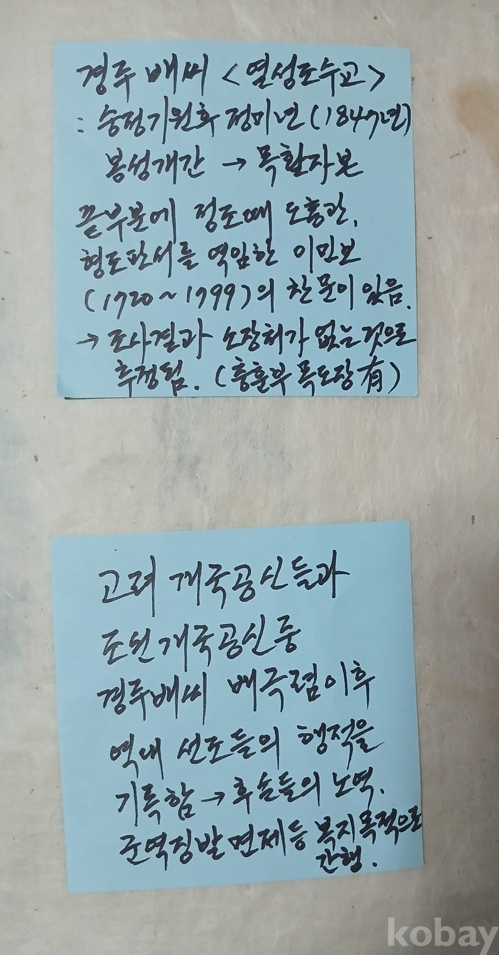원 소장자가 내용에 관하여 메모를 하여 두었는데