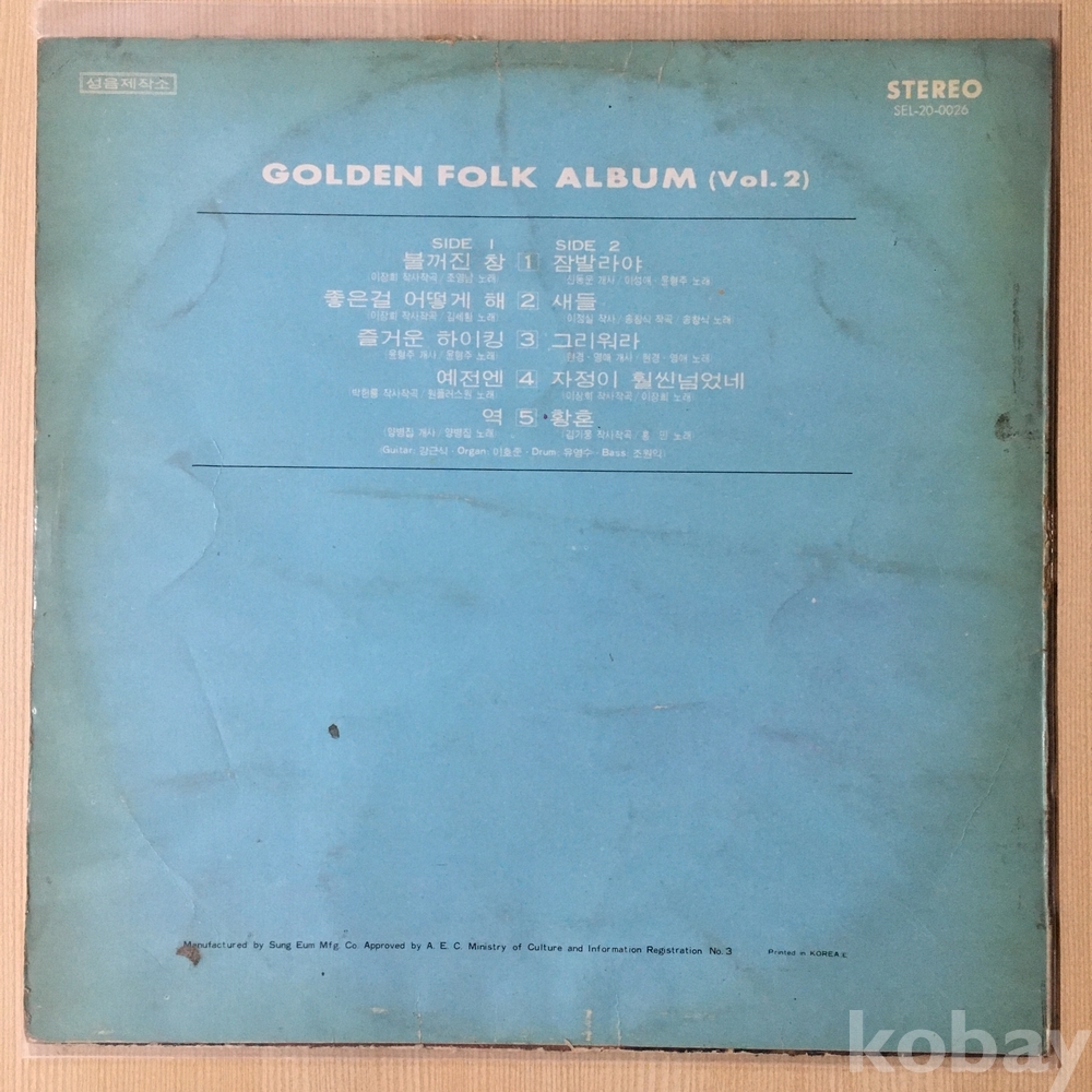 | 자켓상태 | VG : 주름, 접힘, 모서리 찢김 다수 | 음반상태 | VG : 생활 기스 다수, 가벼운 노이즈 존재 | 발매정보 | 초반 | 가사지여부 | 무 |