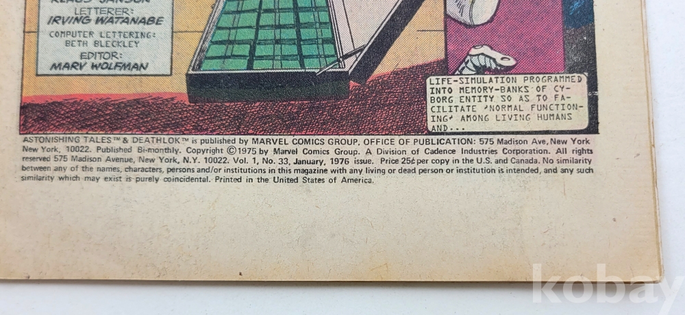 물 품 명 | Astonishing Tales & DEATHLOK / Vol.1 #33 Jan. 1976 / MARVEL COMICS GROUP / 미국 |