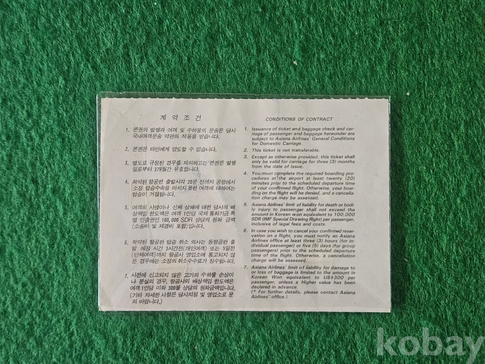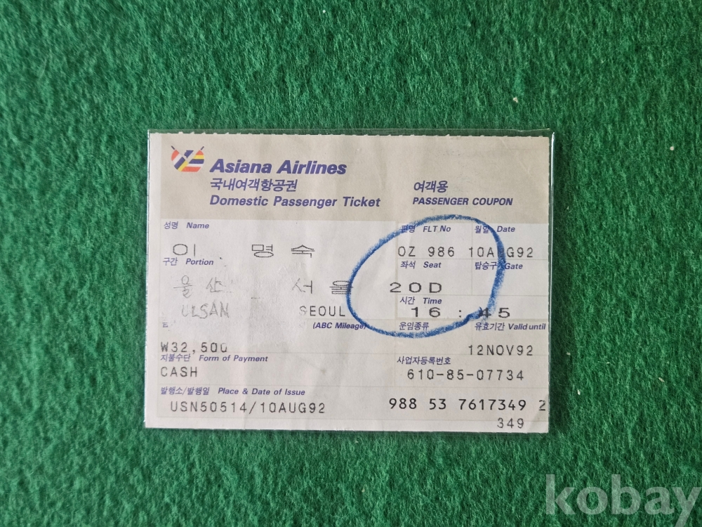 - 아시아나 국내여객 항공권 (여객용) " 울산 - 서울 "
