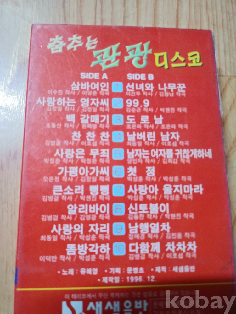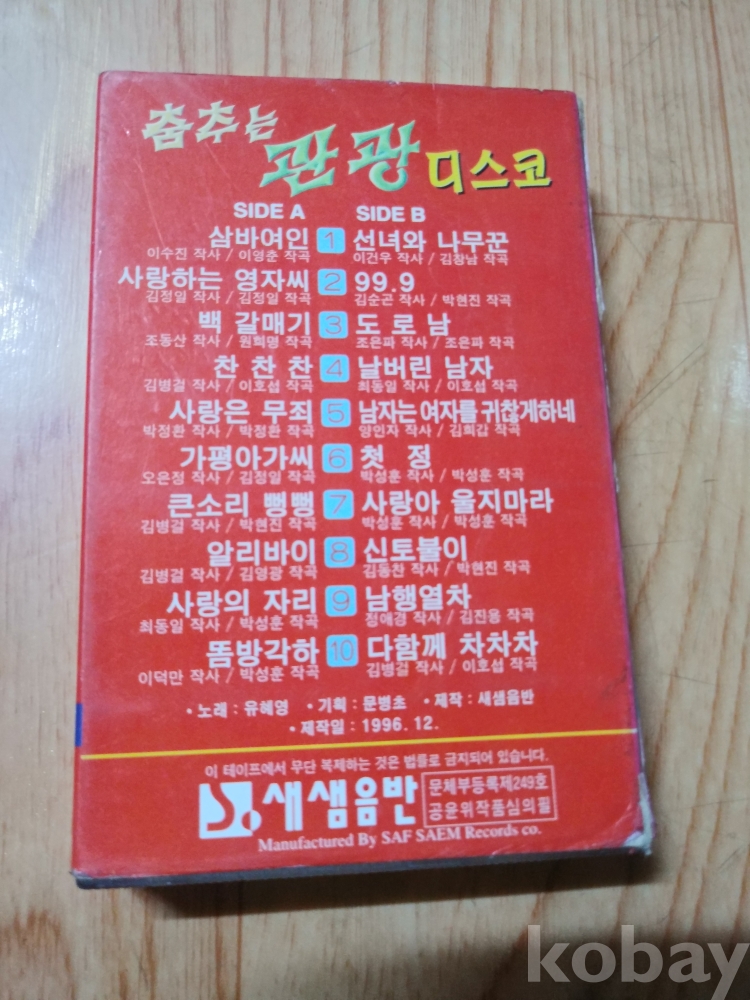 카세트테이프 가수 유혜영 춤추는관광디스코 96년제작입니다