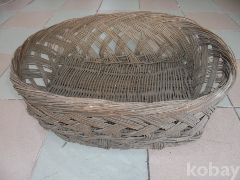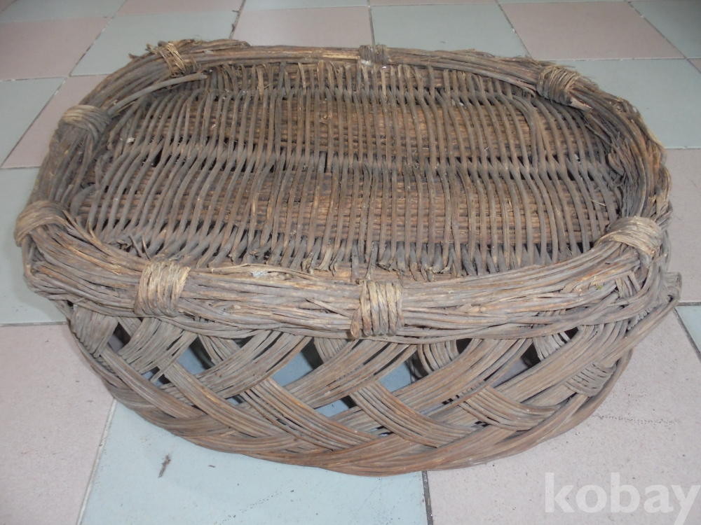 질기고 강한싸리나무로 장인에 만든 오래되여 때물이 짜글짜글한 상태온전한 감담던 추억의 오래된 질긴대형 싸리나무 광주리