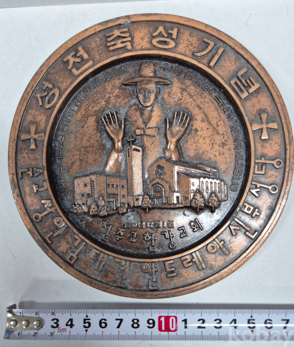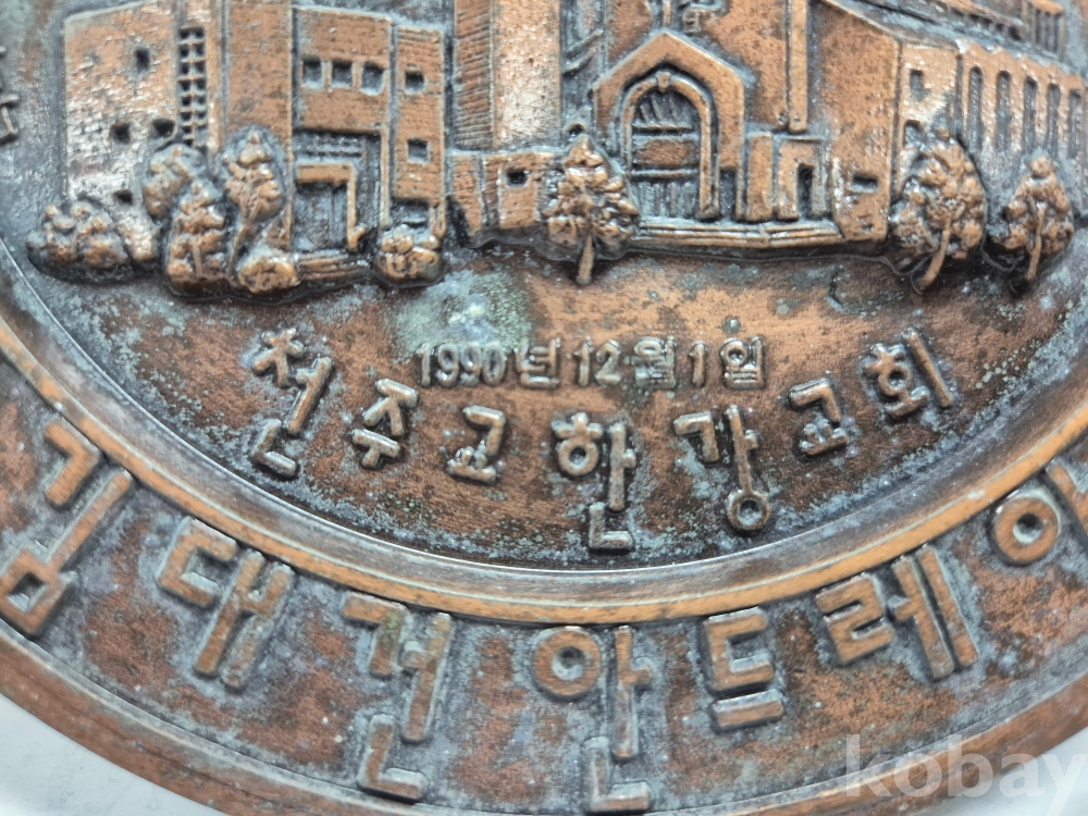 - 1990년 12월 1일 성전 축성 기념패로 천주교 한강 교회에서 제작함.