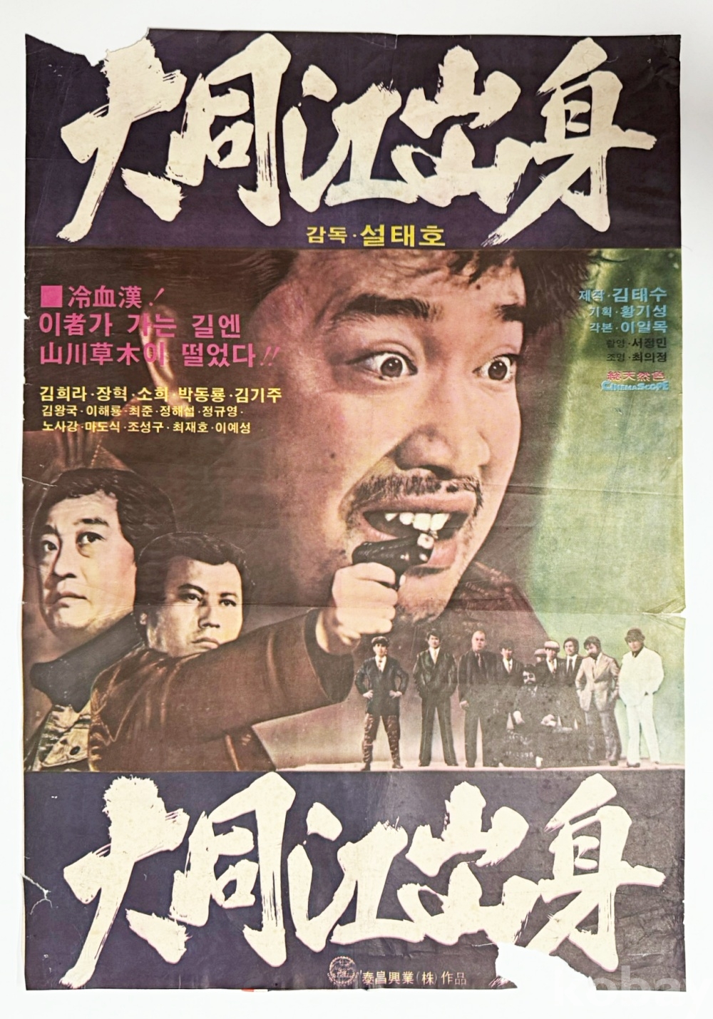 상품 설명 | 설태호 감독의 '대동강출신(大同江出身)' 영화 포스터로 해방 후 월남하여 고난을 겪는 주인공의 이야기를 다루고 있다. | ||