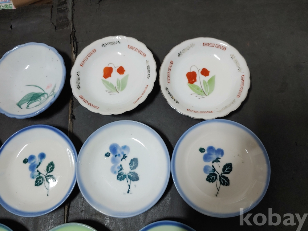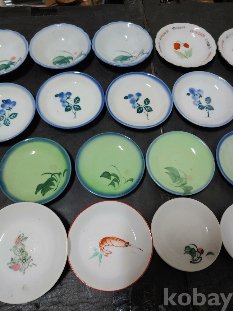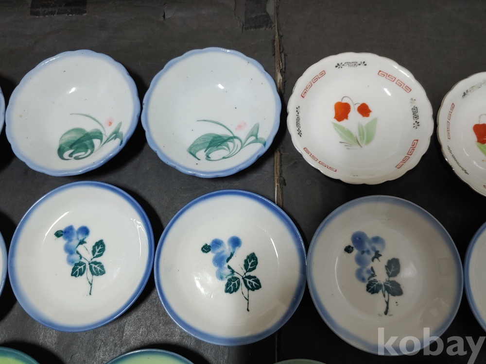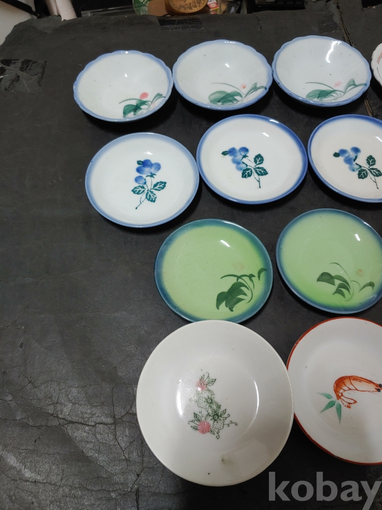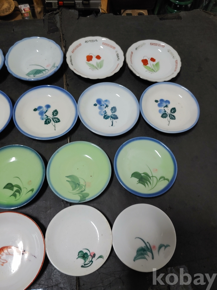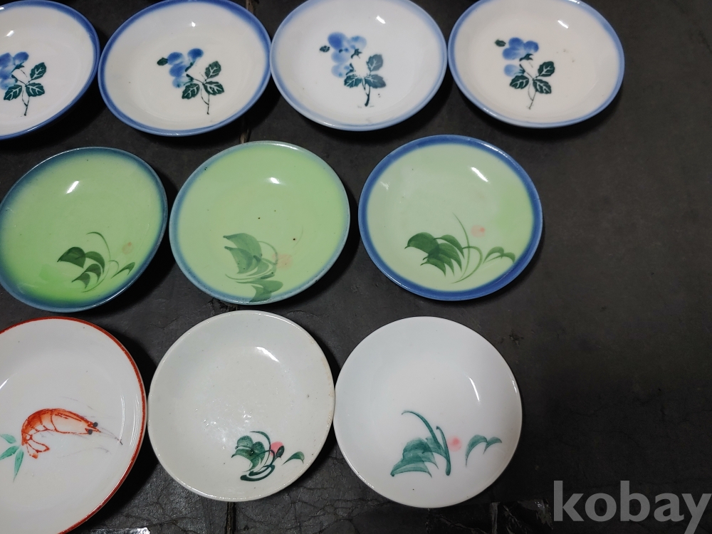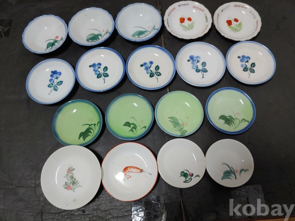 ""종류가 각각인 옛날 외사기 접시 7종류 18개""