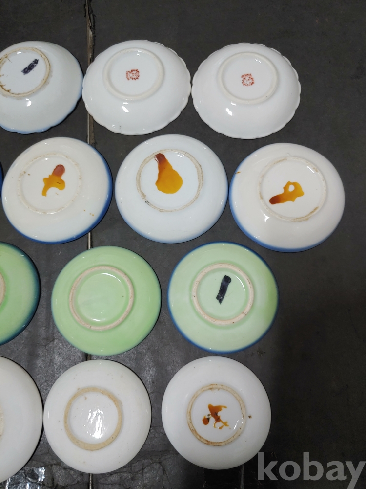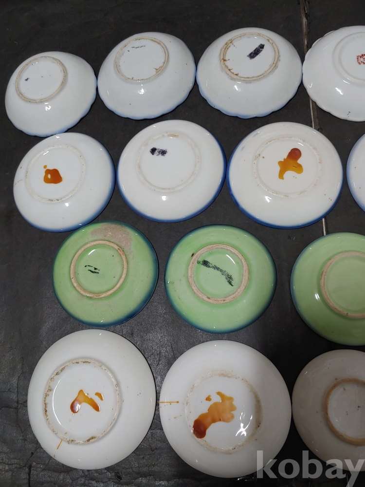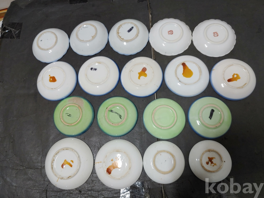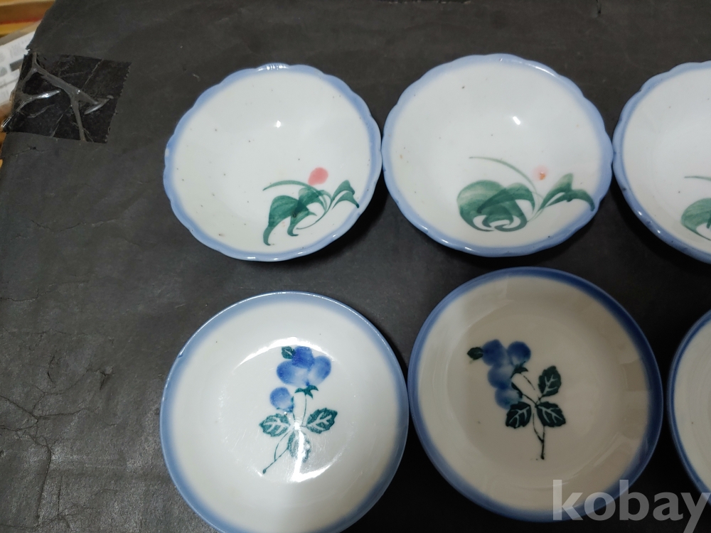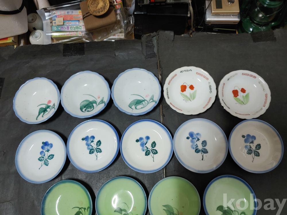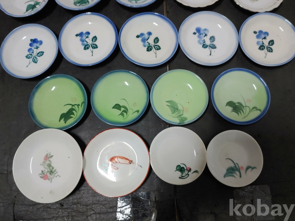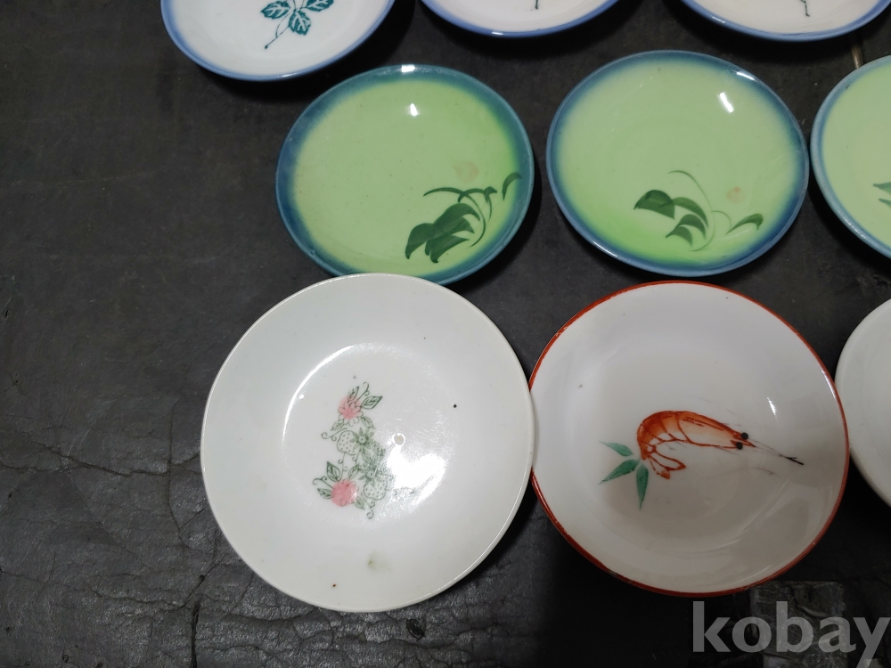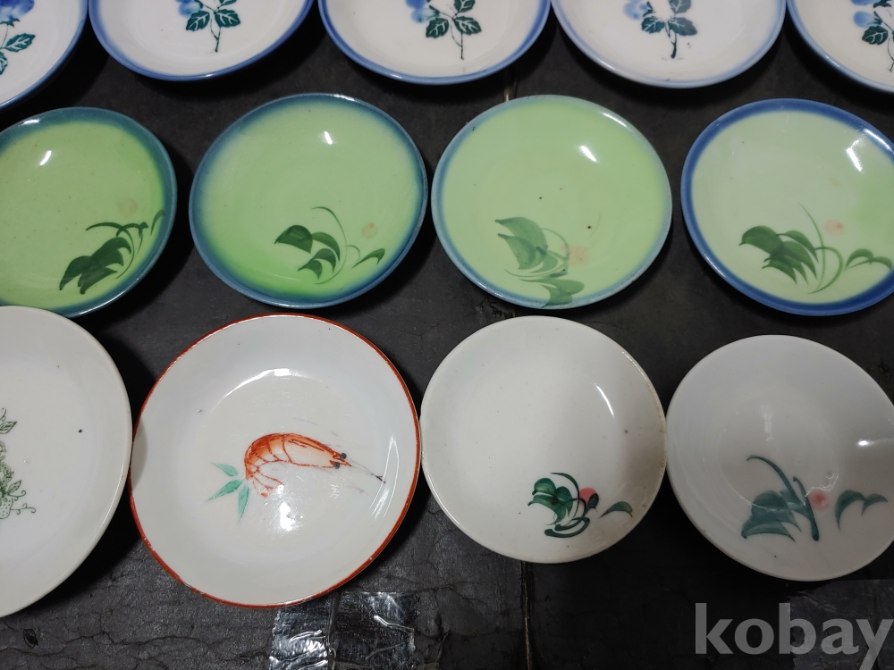 ""종류가 각각인 옛날 외사기 접시 7종류 18개""