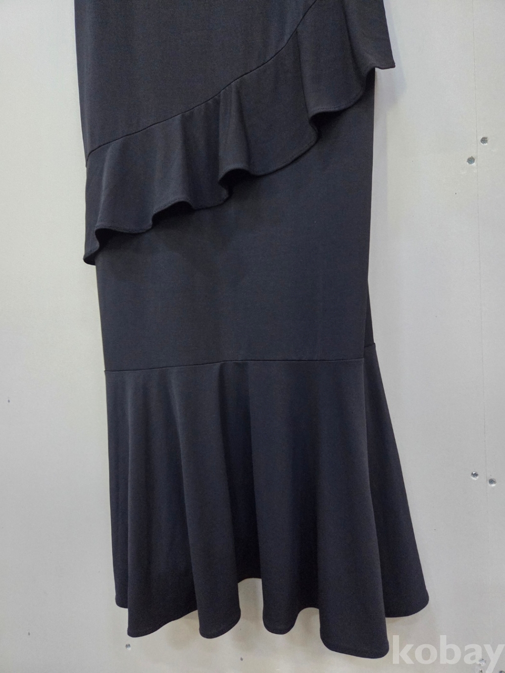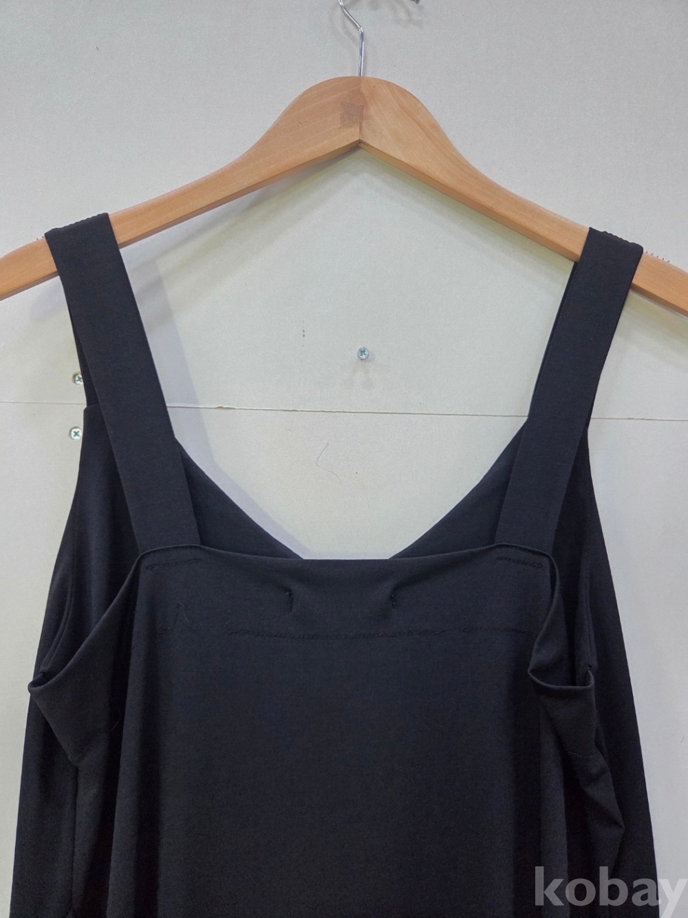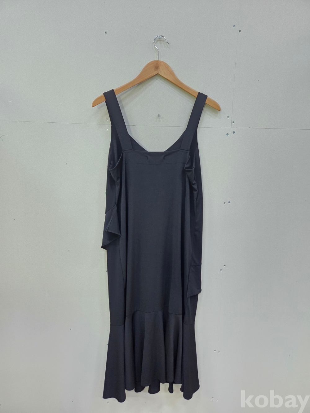 [천원옷장] #41 여성 블랙 러플 슬리브리스 롱원피스 프릴 언밸런스 브이넥 55-66