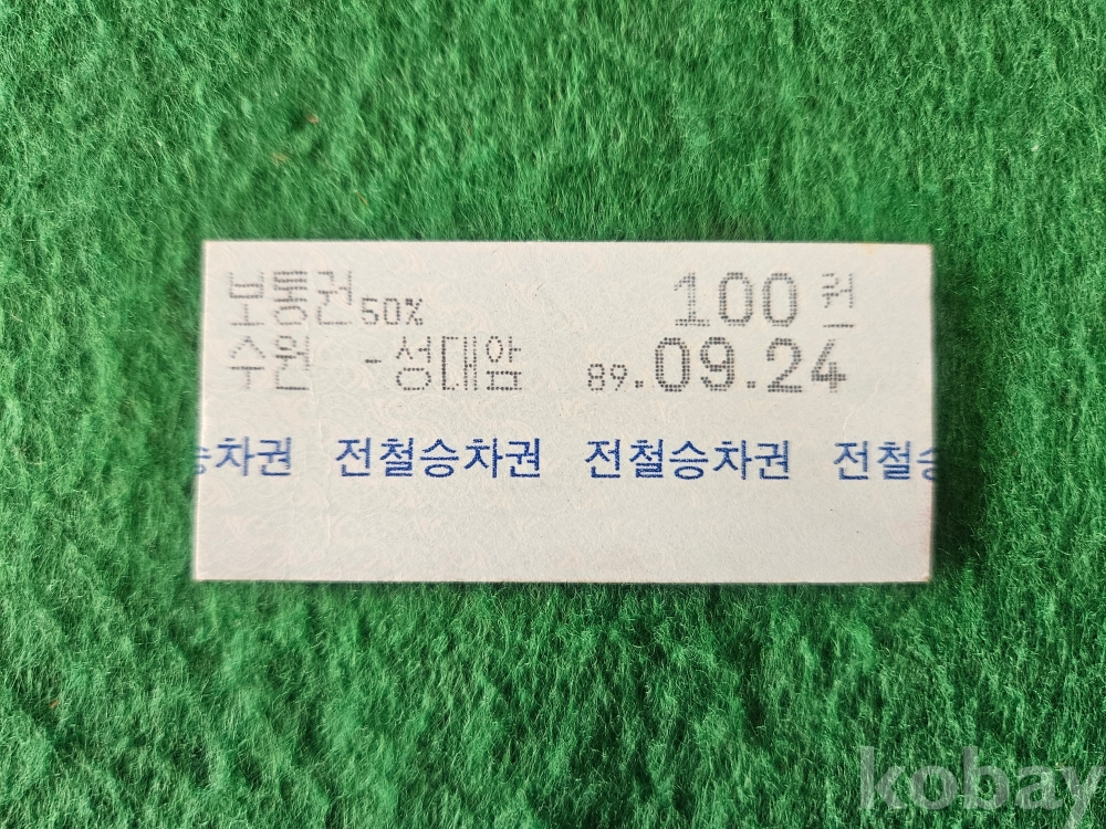 - 전철승차권 " 수원 - 성대앞 " 보통권(100원)