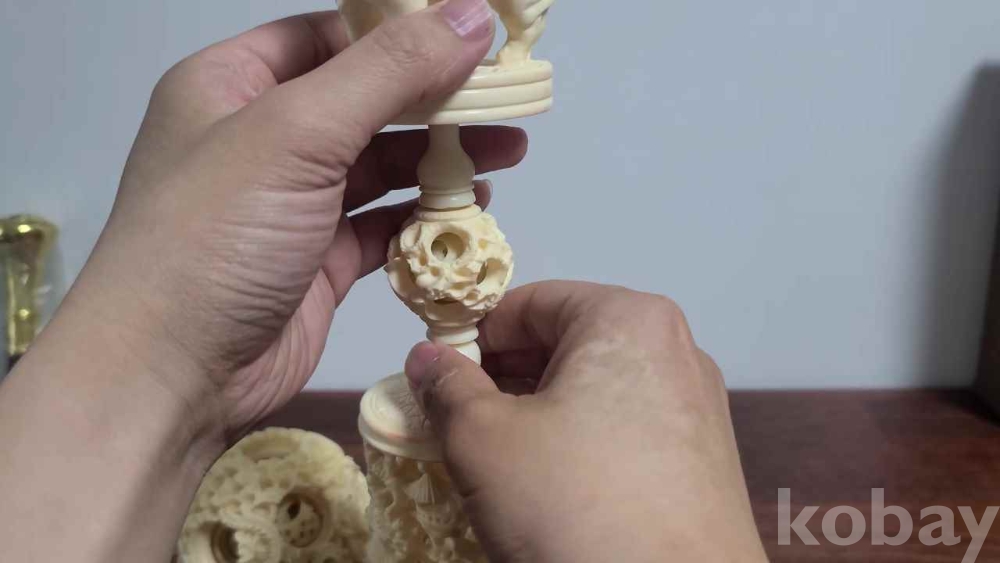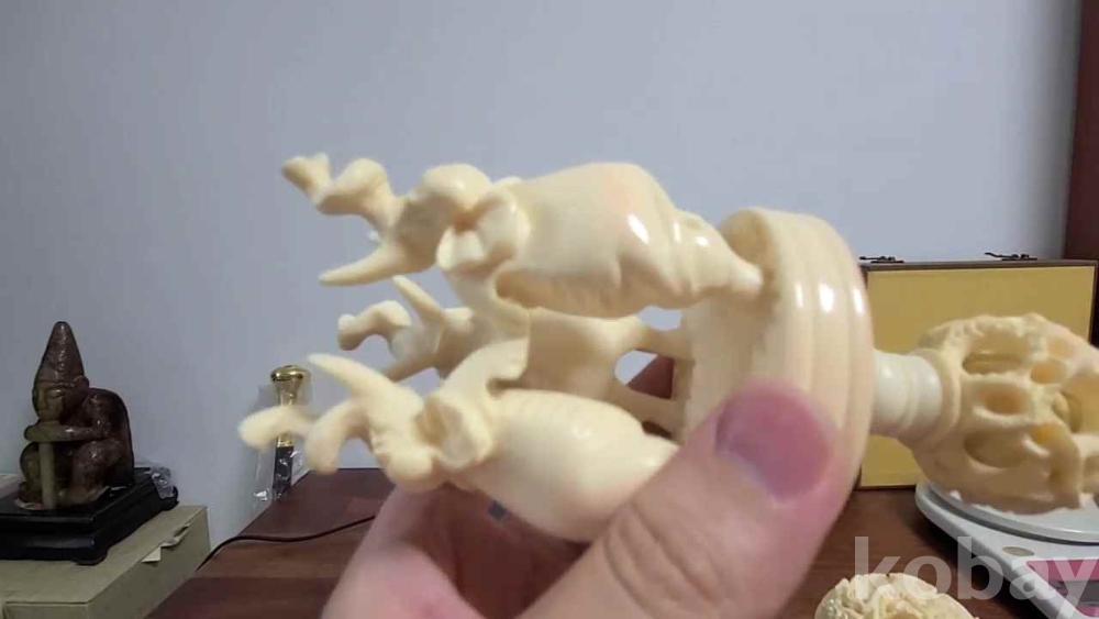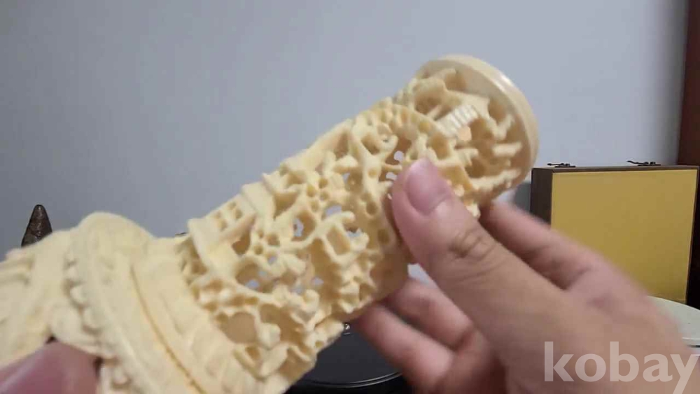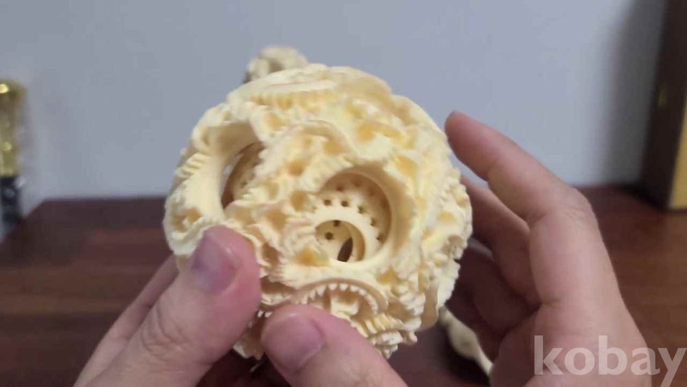 인조 상아를 조각하여 사람이 실제로 단계 별로 깎은 조각입니다. 대단한 기술입니다.