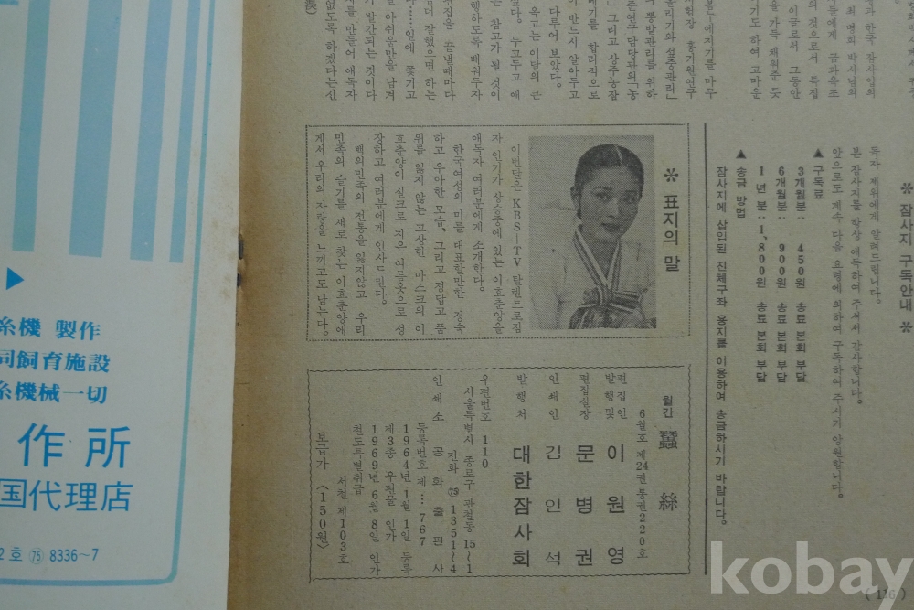 1977년 6월호 잠사 잡지 - 표지모델 영화배우 이효춘 -