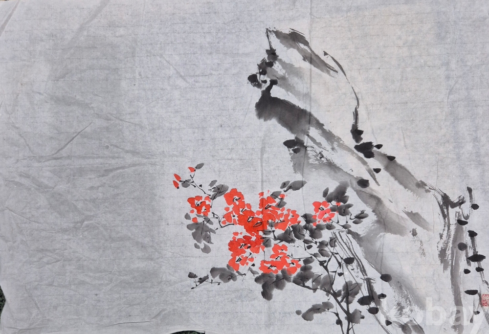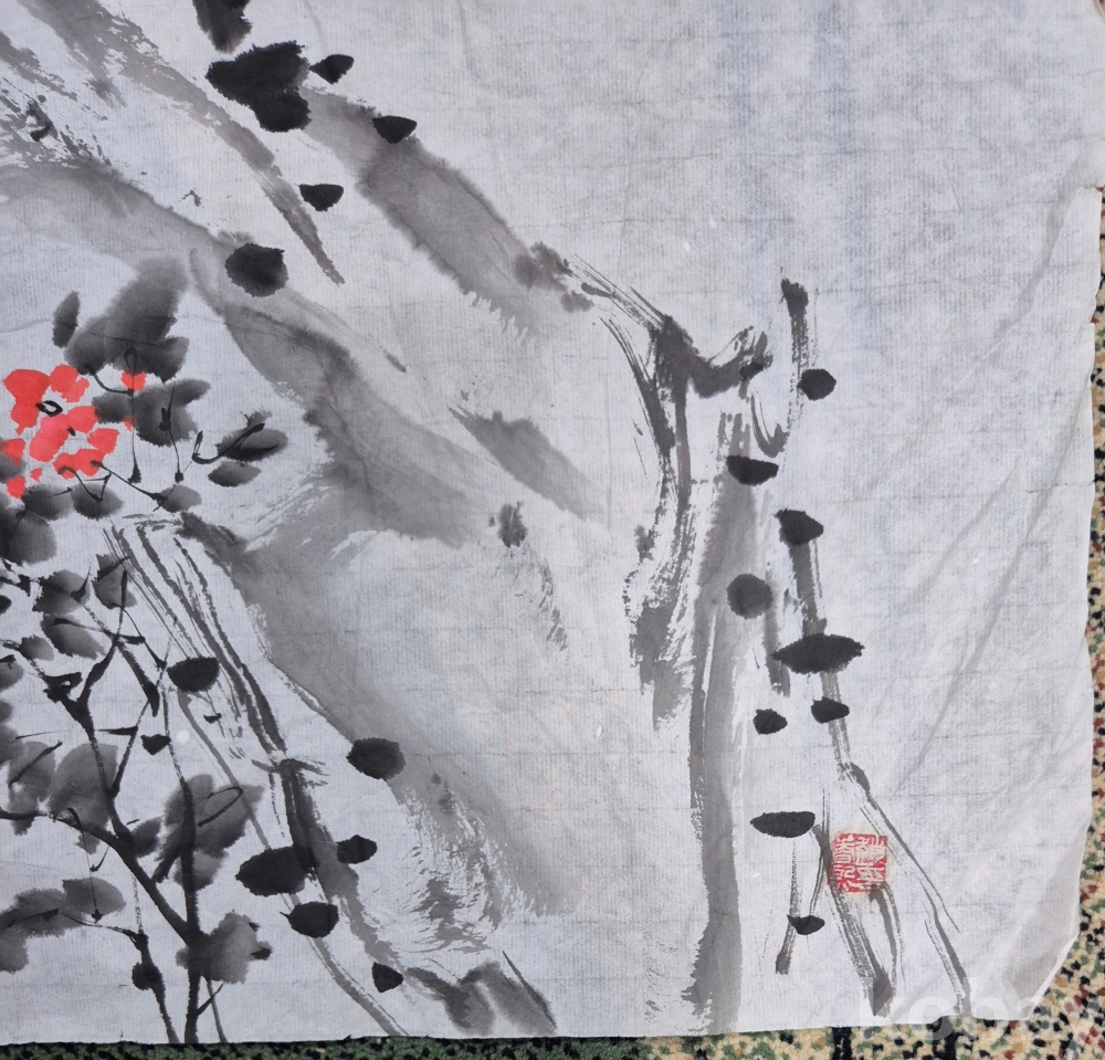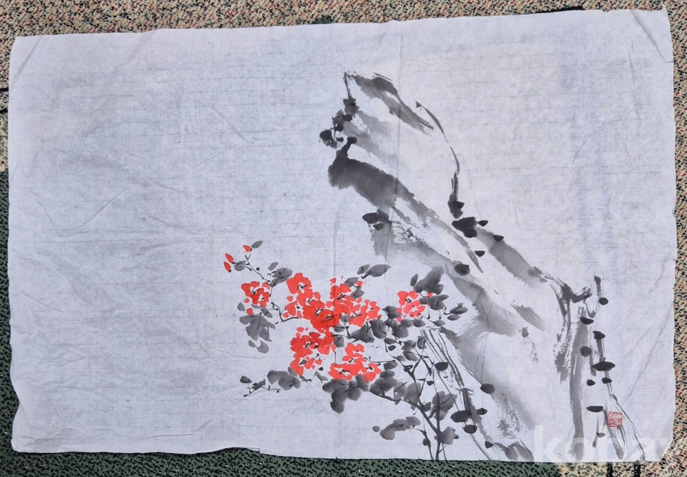실력파 국전작가 조춘희'화백님 괴석이 들어간 아름다운 꽃 그림'이오니 작품 이미지상 낙관'등