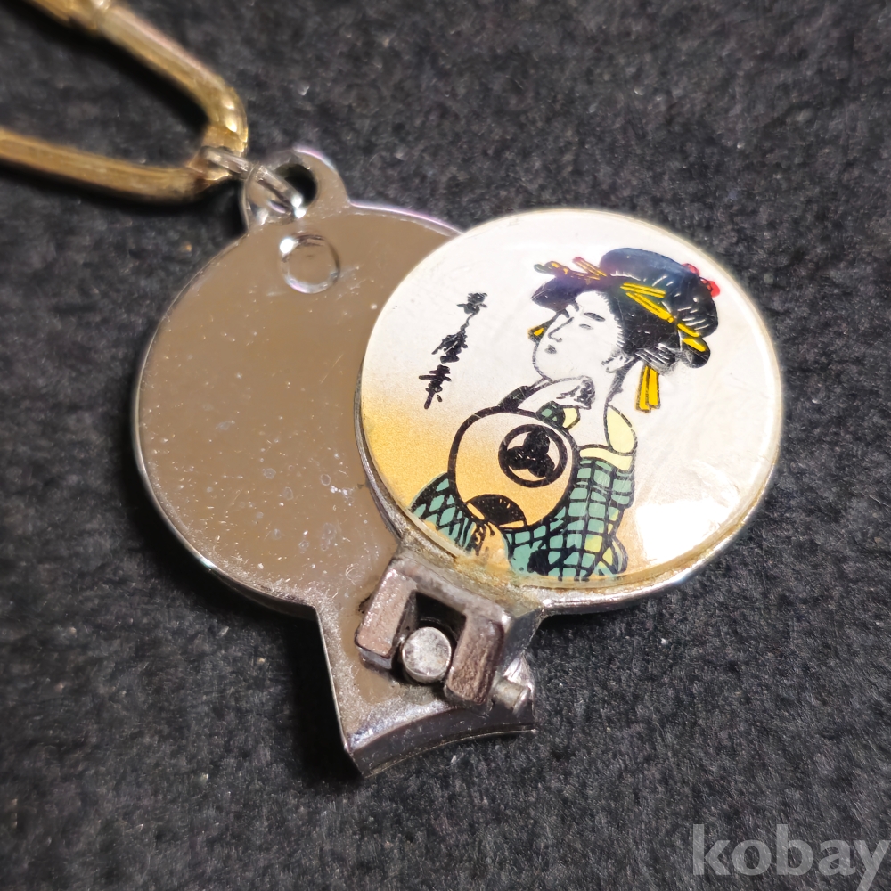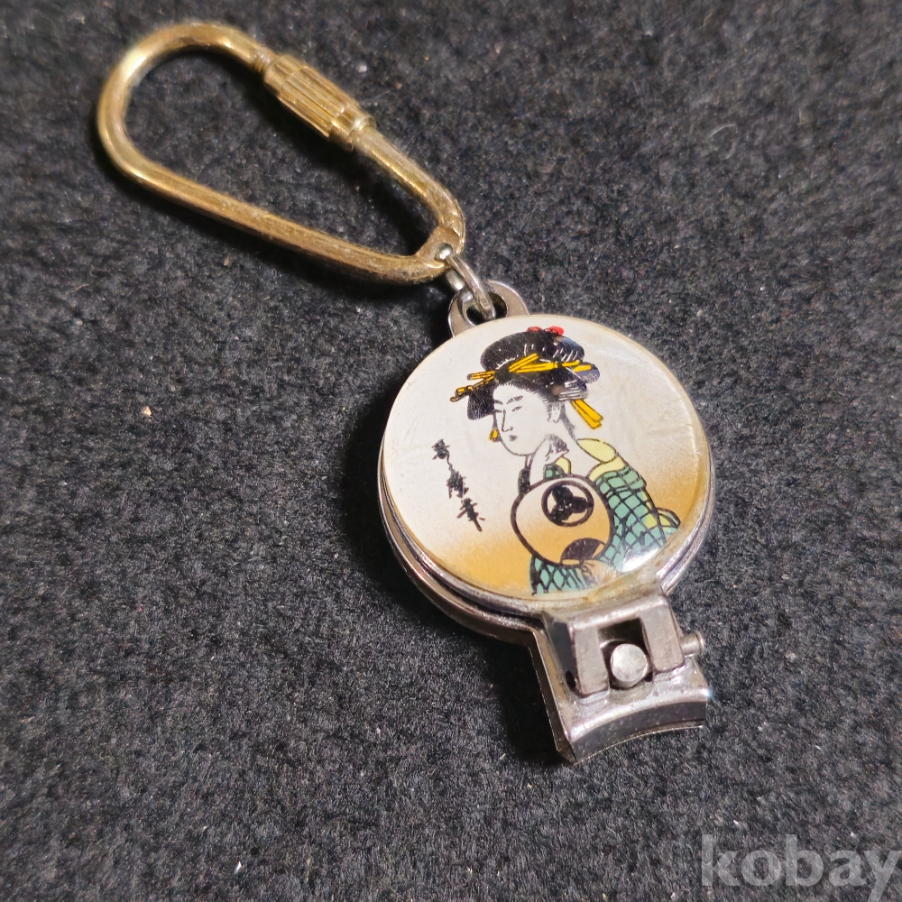 (((열쇠고리))) 오래전 일본관광기념 기모노여인 손톱깍기겸용 금속 키홀더 (키링)