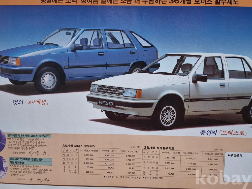 80년대 포니엑셀, 프레스토 자동차 광고 카달로그로
