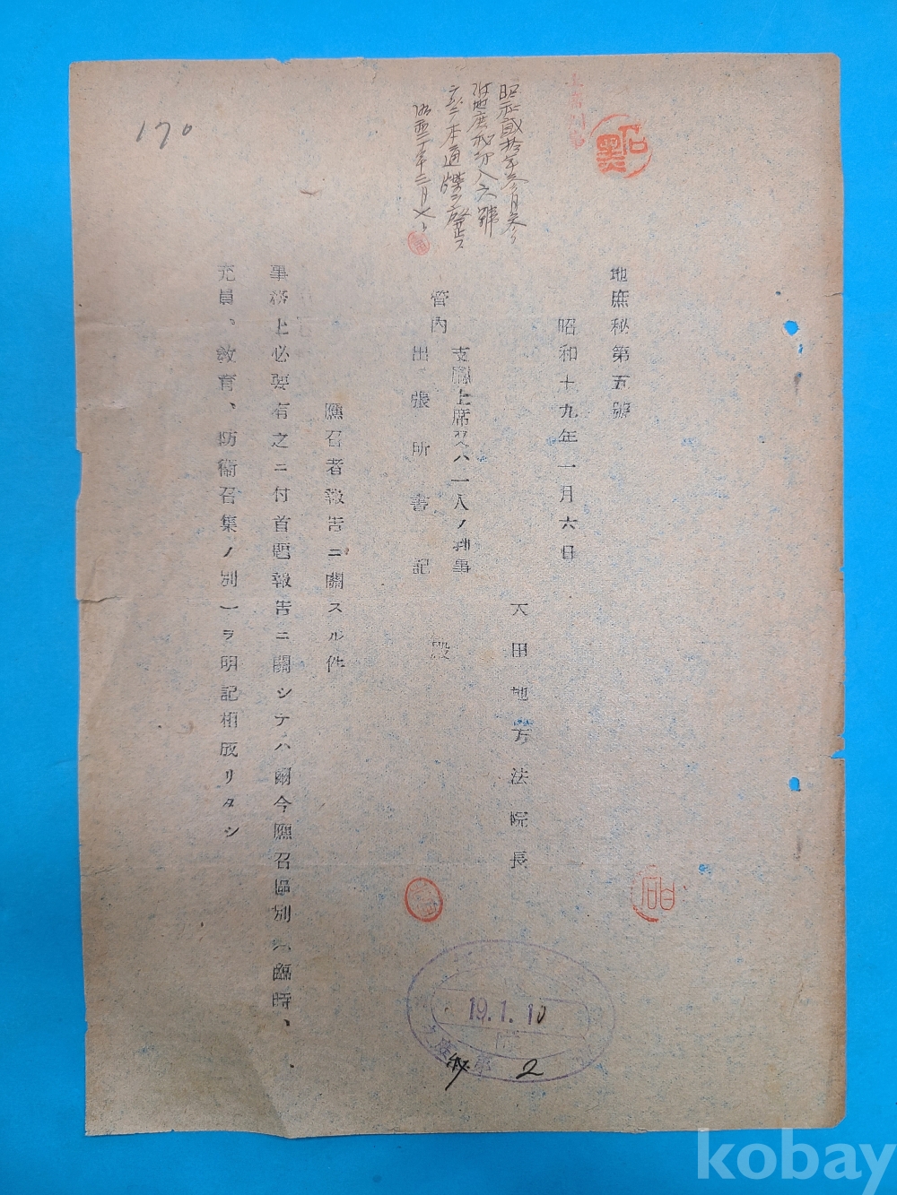 **** 1944년 대전지방법원장이 보낸 문서[응소자보고 관련 건]