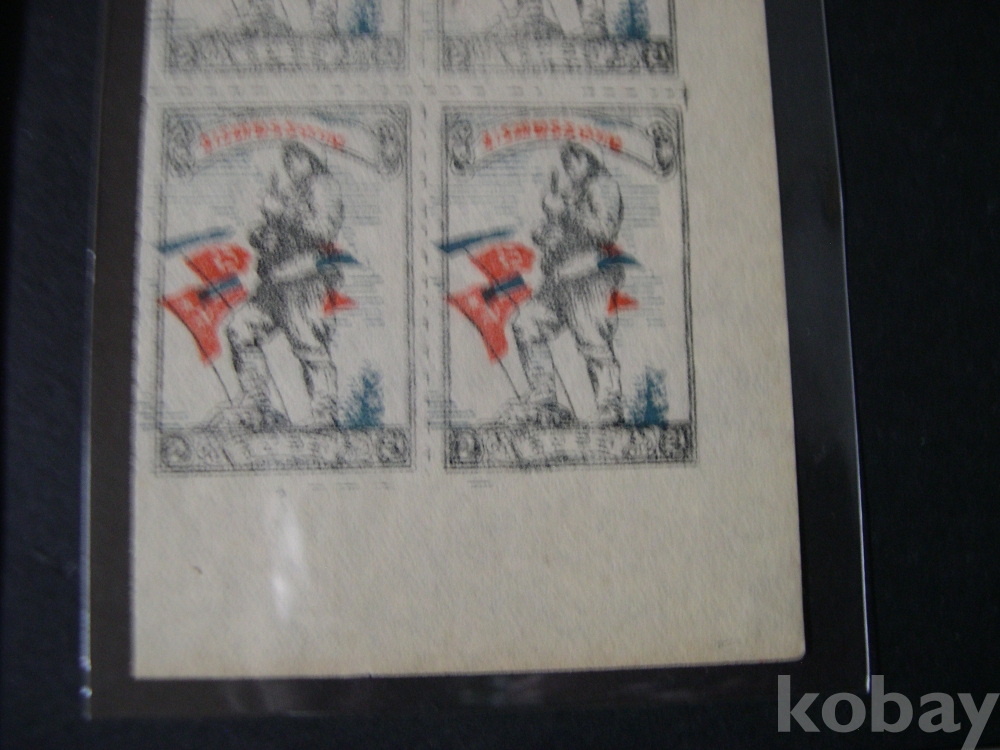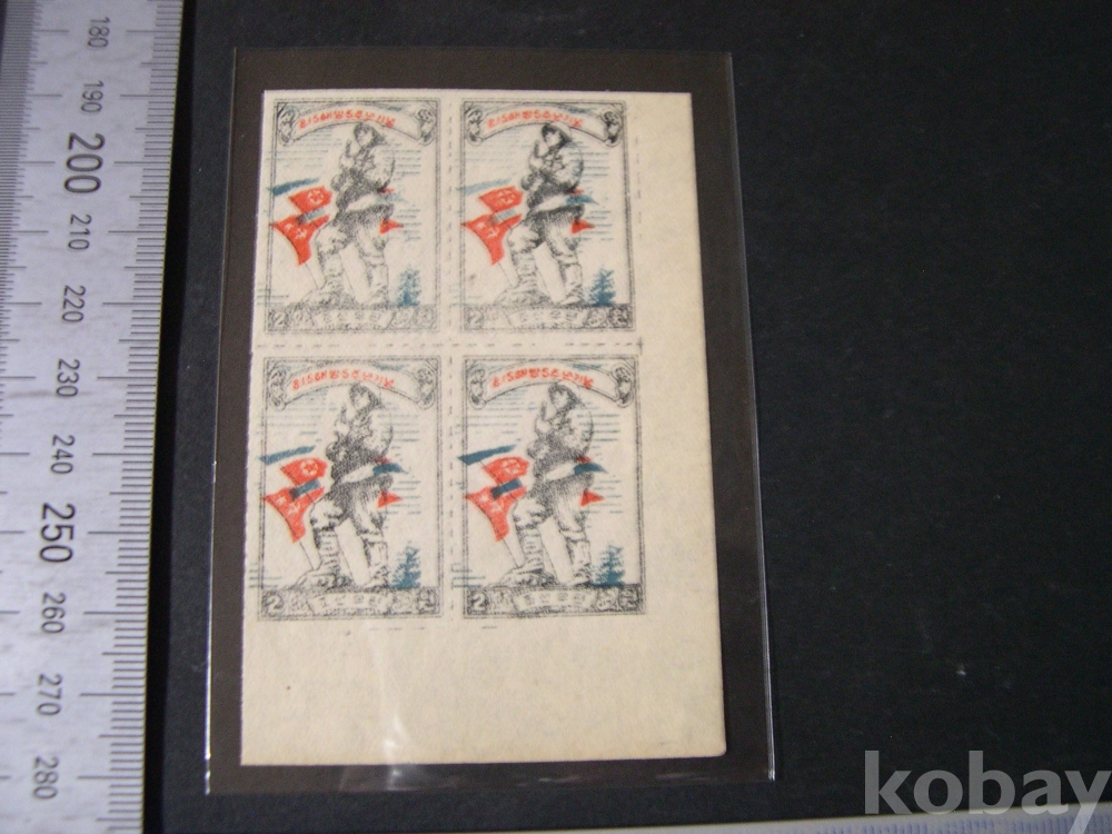 4코너 4매블럭 #10114 : 2원 양국기와 군인 - 8, 15 해방 5주년 기념 (북한)