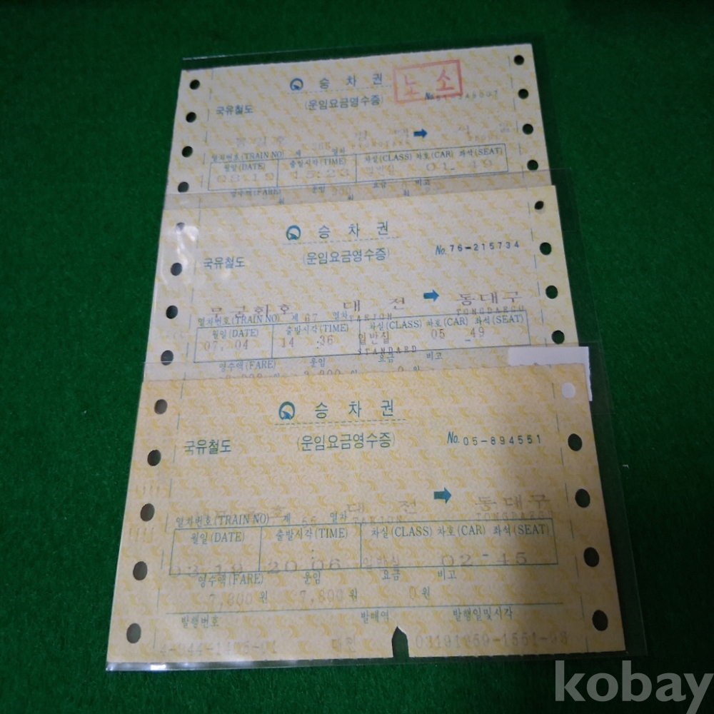 국유철도 새마을 무궁화 통일호 3매 사용제 2
