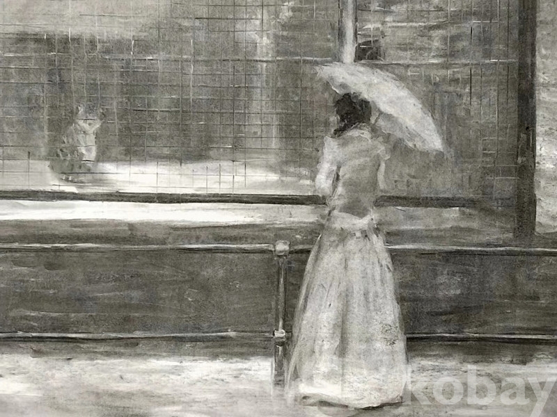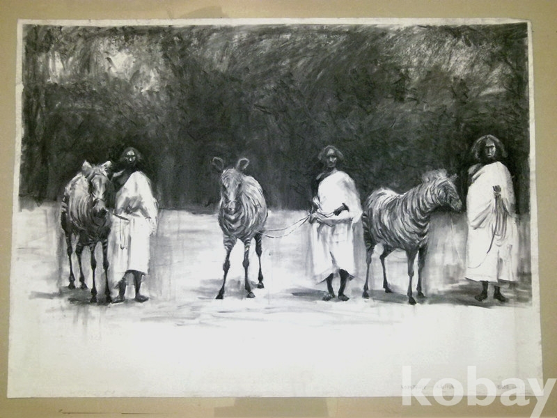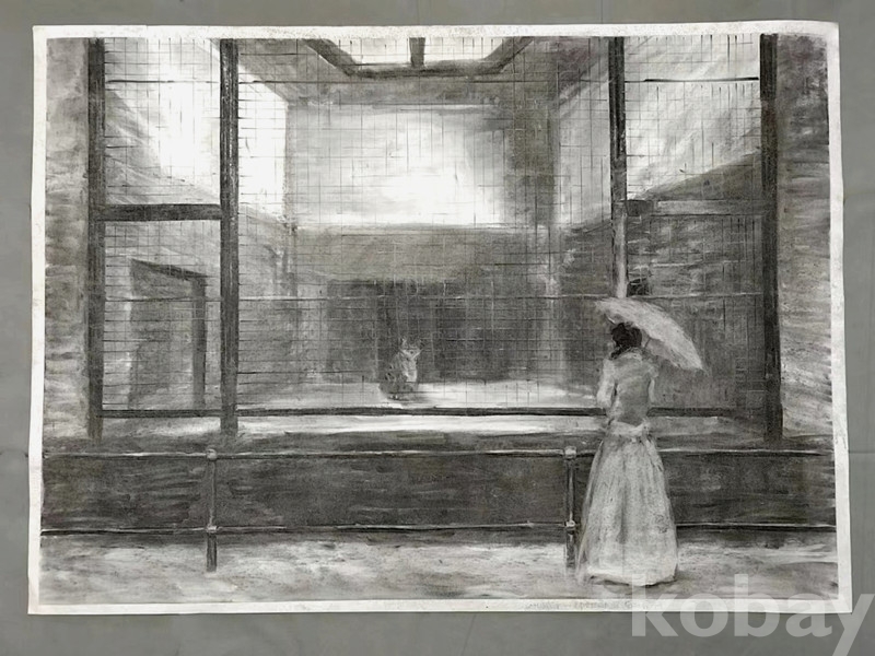 본 작품은 소묘로는 가장 큰 전지사이즈 대형작품으로, 전시패널 등에 부착되어