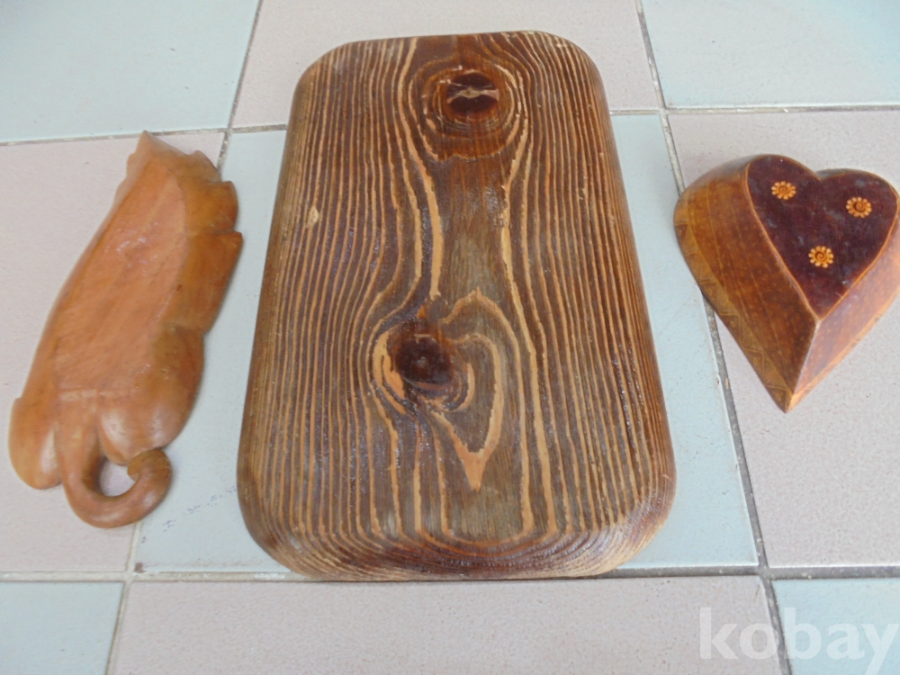 무늬있는소나무류로 사각형 큰쟁반 그릇과 피나무류 나뭇잎모형의 쟁반그릇 특수한 나무에 꽃그림들어간 하트모양의 그릇 총3점