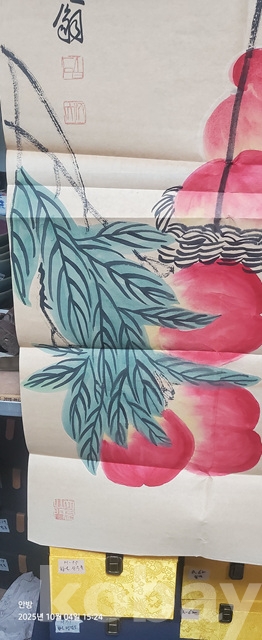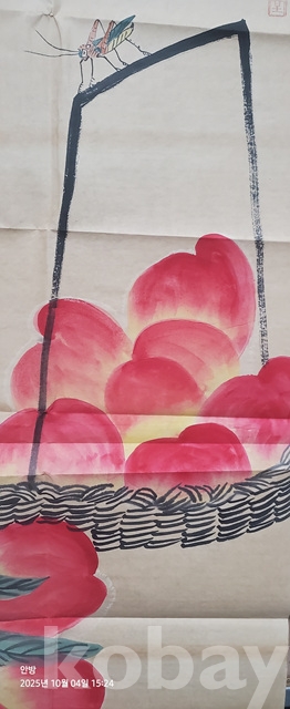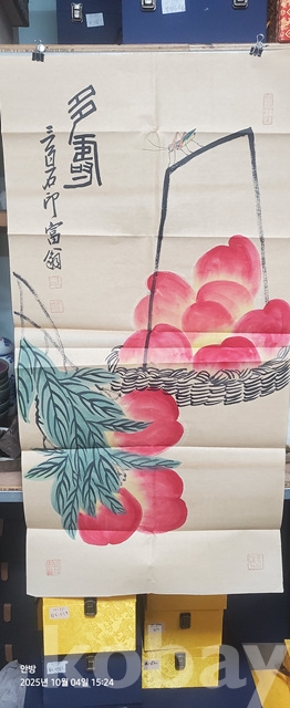 h-99.중국유명화가 제백석의천도복숭(실체그린그림미감정)