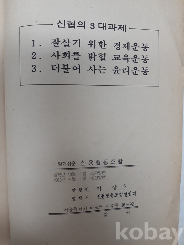 1982년6월1일 신용협동조합연합회 발행 [알기쉬운 신용협동조합]