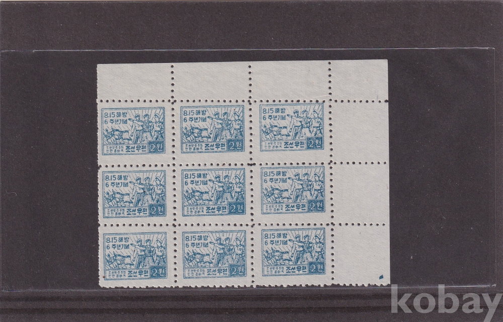 [윗동네 미사용 우표 모음展] - 8.15해방 6주년 기념 조선 및 중국 병사 2원(9장) 블럭