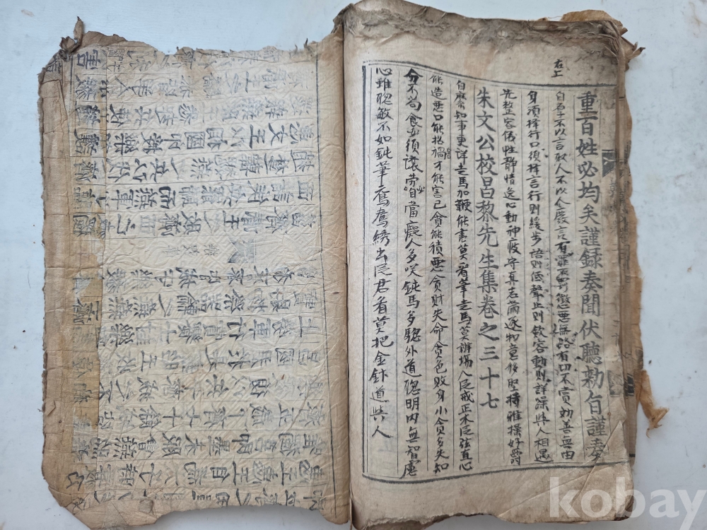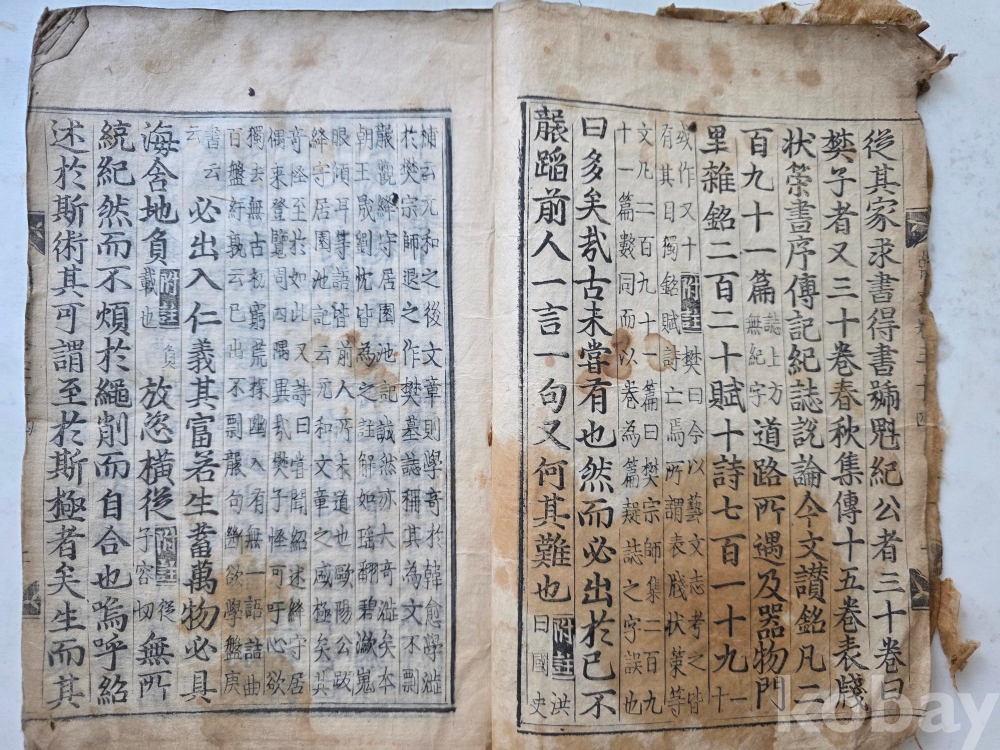 뒤편 상단 부 여러 장 쥐가 갉아먹음.다행히 본문은 상태 양호.