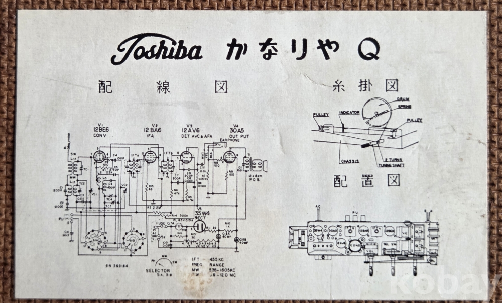 제 품 설 명 | ▣ 일본 TOSHIBA에서 만든 작고 앙증맞은 진공관 라디오로 MT관 5개로 구성되었습니다. ▣ 60년이 된 라디오로 MW / SW 모두 정상 동작함. ▣ 오래된 라디오이지만 주파수 그릴 창 디자인이 심풀하고 산뜻하여 라디오 수십 마니아님께 인기가 많은 모델입니다. ▣ 라디오 내부와 외부 청소(over haul)하였으며 내부 부속들은 아주 깨끗한 편입니다. ▣ PHONO 연결이 가능하며 RADIO와 PHONO 선택 스위치가 있음. ▣ 세월의 흔적으로 스크레치가 있으며 윗면은 진공관 열로 열화현상이 있으며 작은 크랙 3곳이 있으며 노브 3개는 다시 제작(사진 14, 15번 참조)한 것입니다. ▣ MW(중파)는 주파수 특성상 밤과 낮 또는 지역에 따라 수신의 편차가 있을 수 있음. ▣ 신용거래를 위해 내부 사진 첨부하였음. ▣ 기타 부분은 오래된 라디오이므로 사진을 충분히 검토하시길 바라며 미입금 사례가 없으시길 정중히 부탁드립니다. |