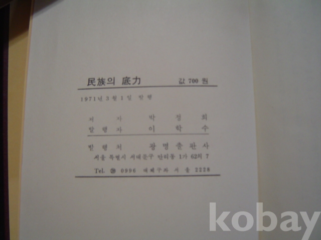 1. 민족의 저력, 박정희, 광명출판사, 1971년, 305쪽, 상태 상, 사진 참조