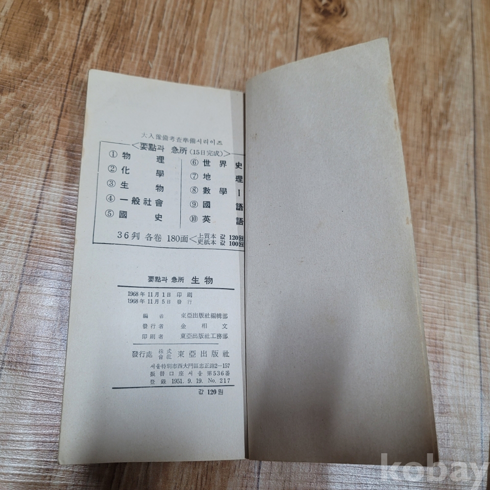 교육자료/대입예비고서 준비시리이즈 생물 1968년발행